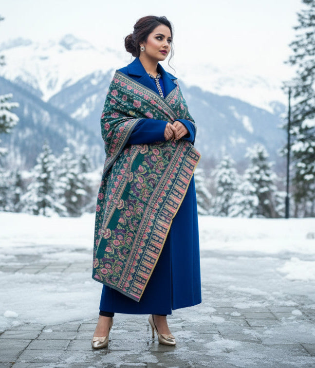 Experience the thrill of endless possibilities with our Shawl Collection ! This exquisite shawl showcases a traditional Kaani woven design that highlights intricate patterns and fine craftsmanship. The designer border adds a refined touch, complete the look with effortless grace. Warm, lightweight, and beautifully textured, it is perfect for winter outings, casual wear, or special events.