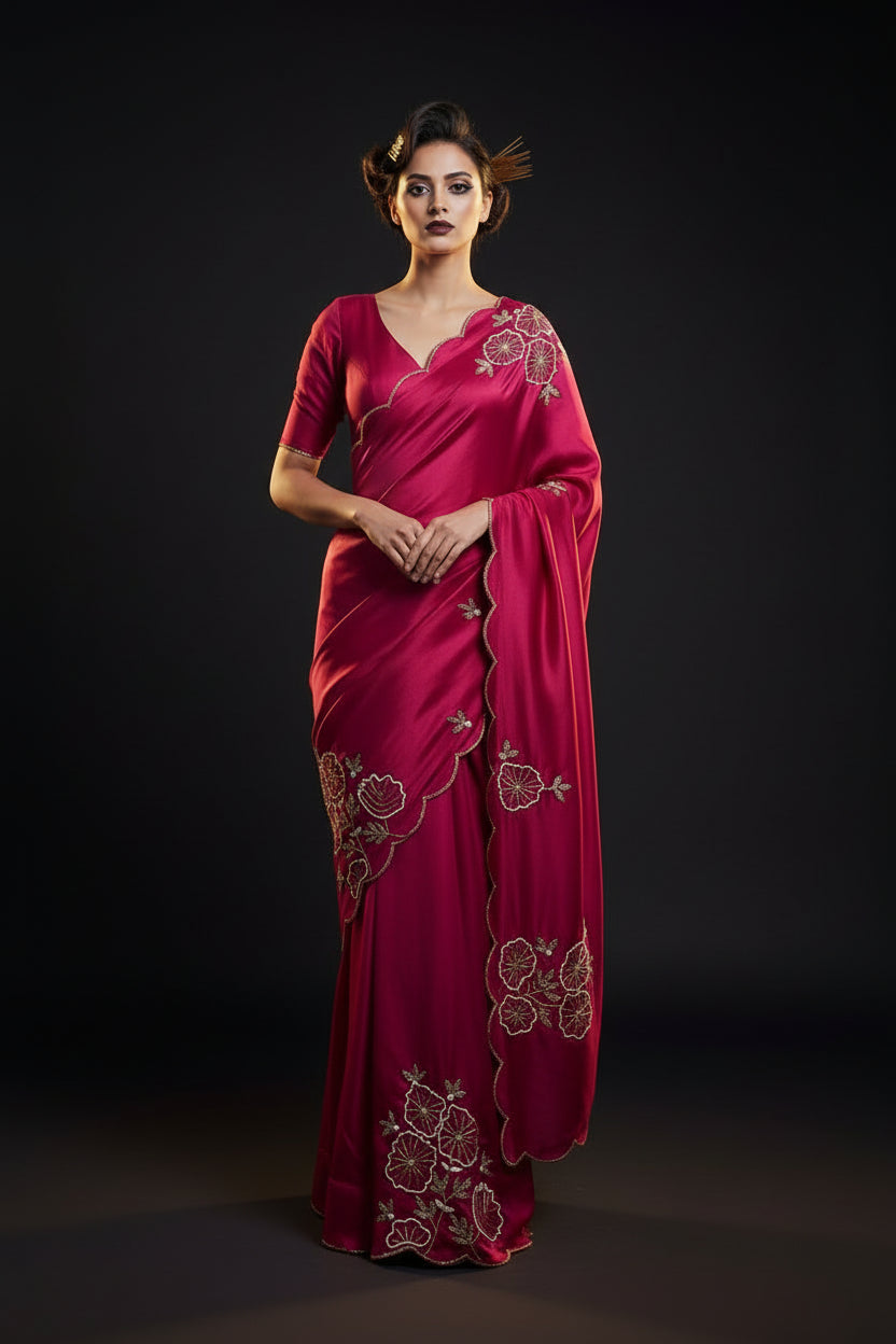 The displayed model image is AI-generated to demonstrate the saree’s drape and elegance. Actual product color and details may vary slightly. Please review the original product images for precise representation.