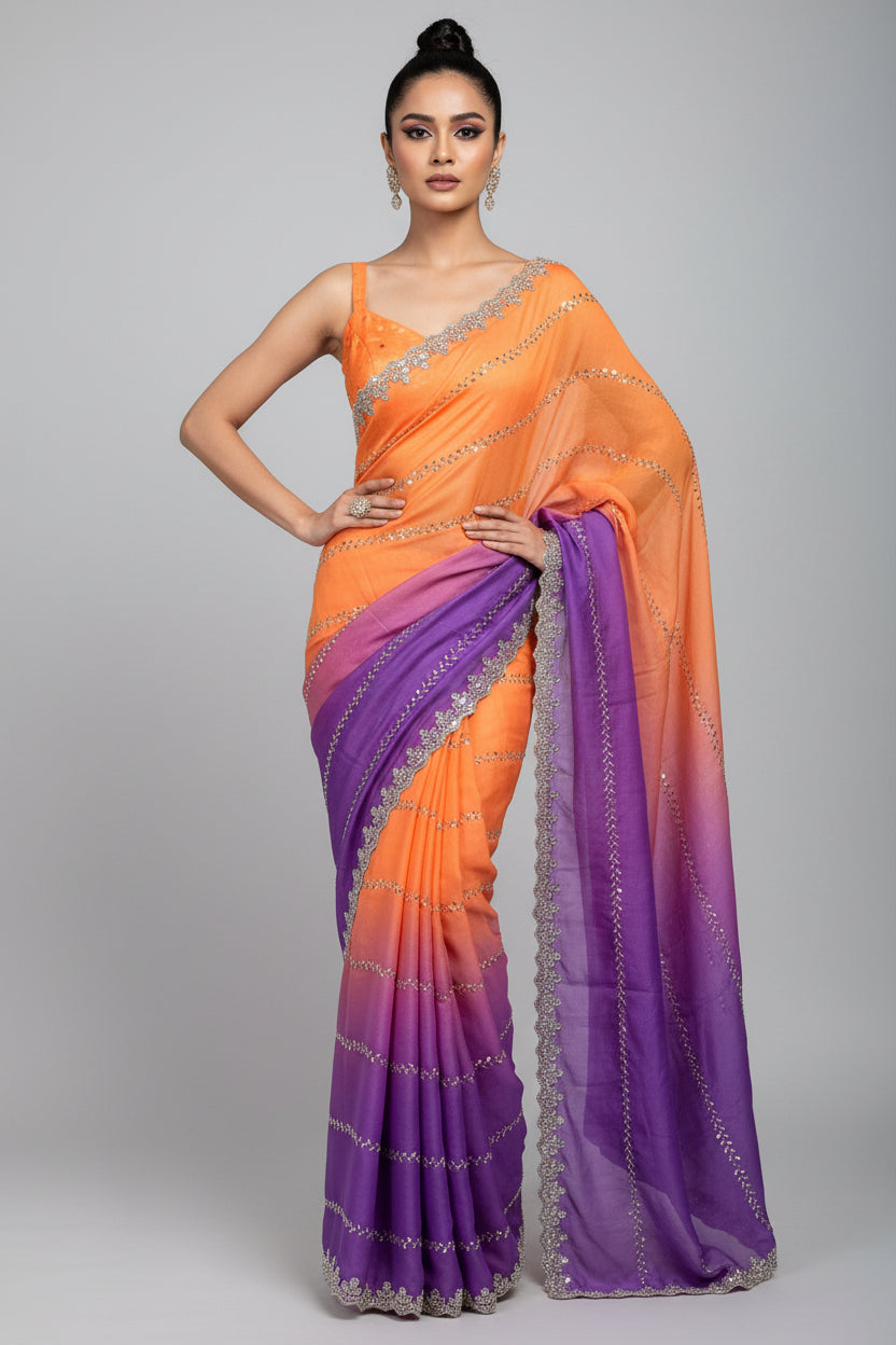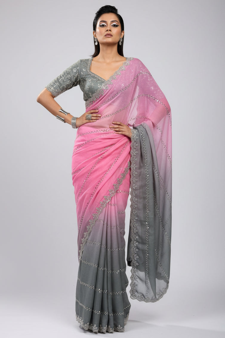 Threaded Story Georgette Silk Saree
