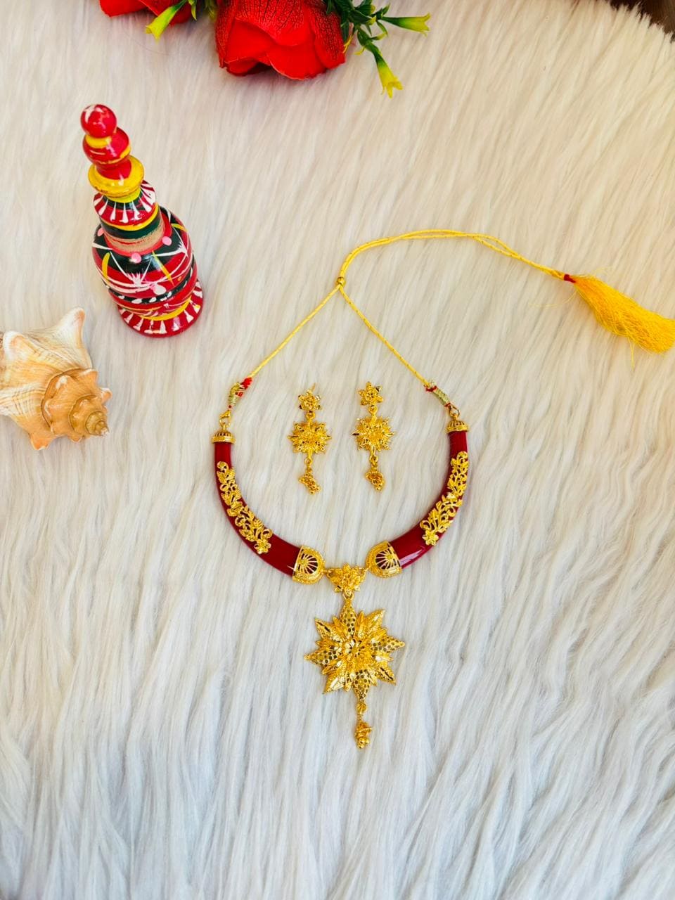 Necklace Comes with Pola (with Golden plated work on it)