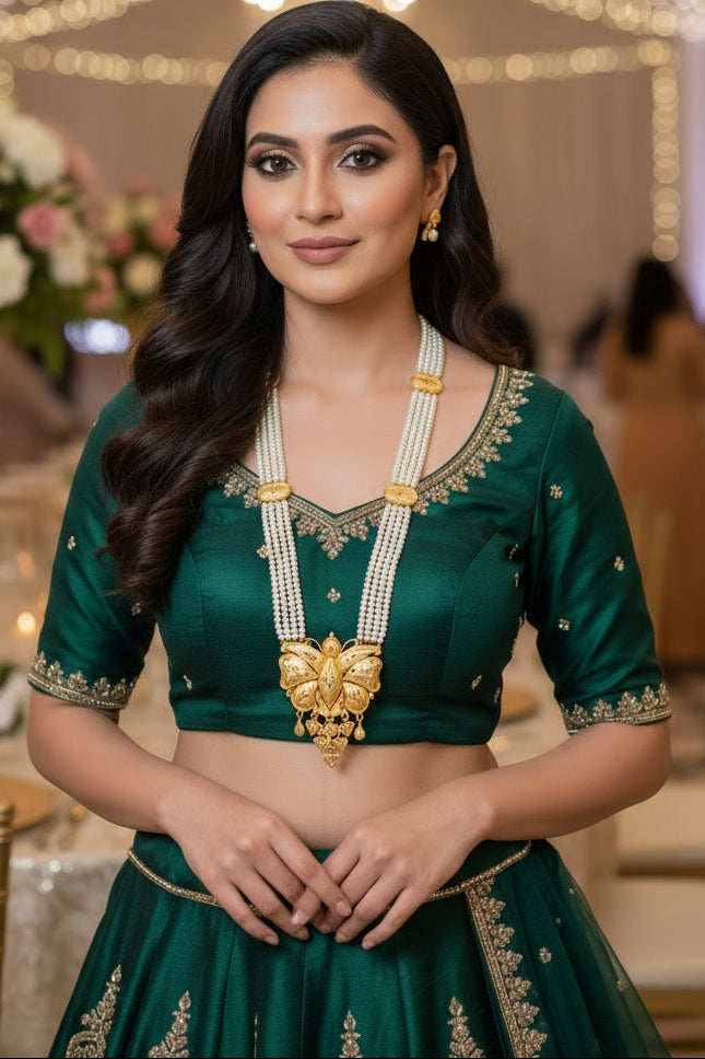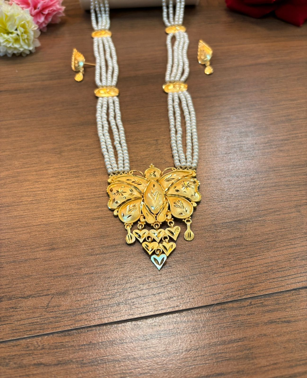 Elevate your traditional charm with the beautiful Necklace & Earring Set, a masterpiece of timeless elegance and modern grace. Crafted with precision and plated in radiant gold, this long necklace showcases intricate detailing inspired by classic Indian artistry. The matching earrings complete the regal look, making it perfect for weddings, festive celebrations, and grand occasions.