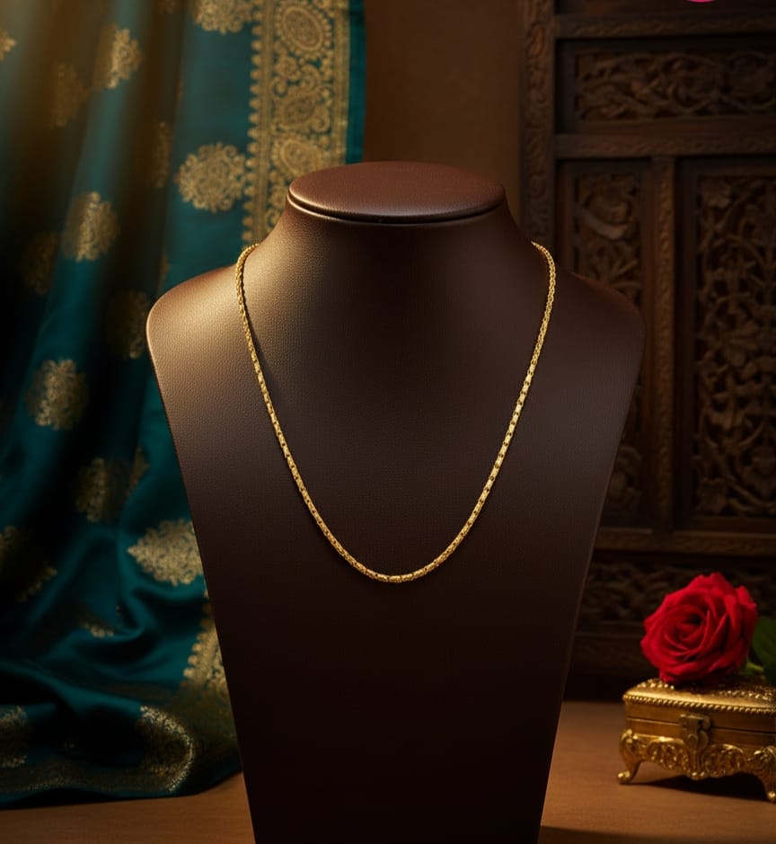 Transform your wardrobe with a Gold-Plated chain, ideal for adding a glimmer of radiance. Versatile in its ability to complement any ensemble, this collection is an essential addition to any sophisticated closet.