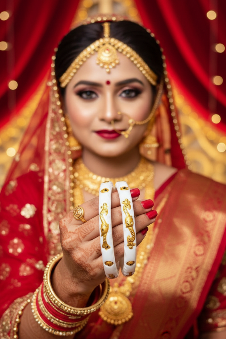 - Complete every Bengali look . Bengali Durga puja look can not be completed without a pair of Pola bandhano.