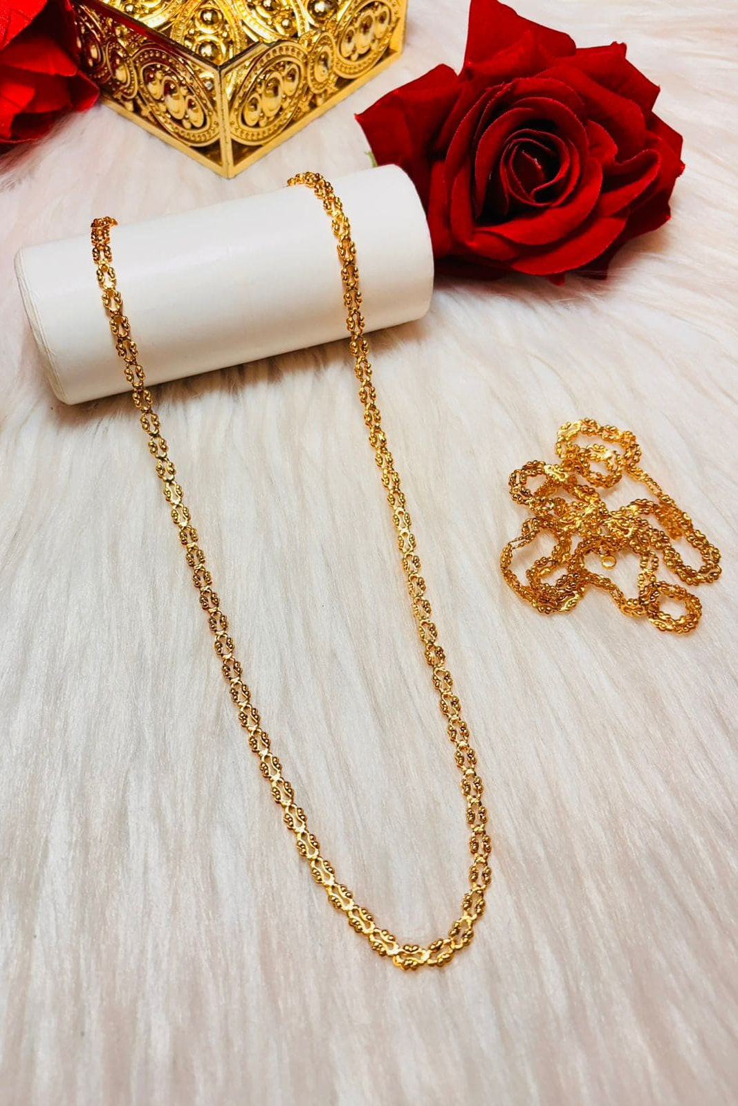 Transform your wardrobe with a Gold-Plated chain, ideal for adding a glimmer of radiance. Versatile in its ability to complement any ensemble, this collection is an essential addition to any sophisticated closet.