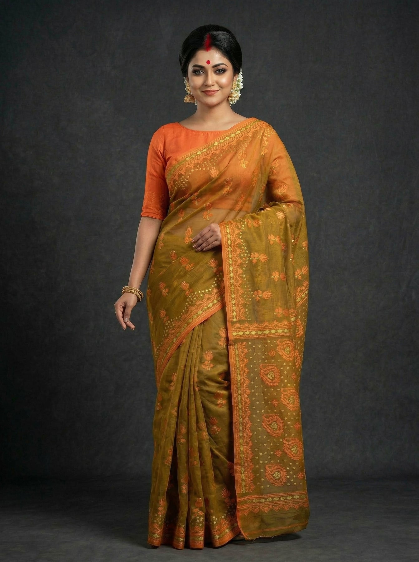 Pata Bahar Dhakai Jamdani Saree This Designer cotton jamdani Saree is the perfect choice for an exclusive look. Crafted with cotton and its weaving design in rich color, this saree adds a sophisticated touch to any wardrobe. An ideal option for elegant occasions, this exquisite piece will make you stand out