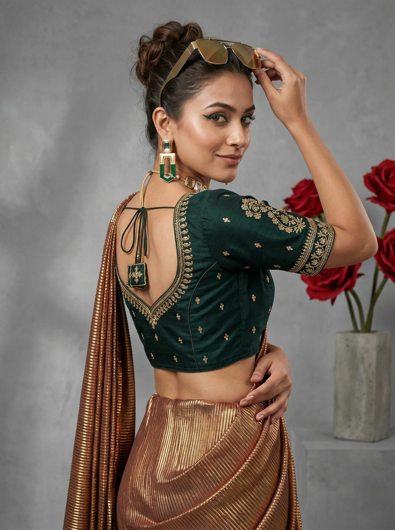 Discover amazing bargains with our new Designer Blouse! Made from soft Vichitra Silk fabric and adorned with stunning fancy Embroidery and Zari  sequins work, this Blouse offers the perfect combination of fashion and comfort. Shop now in XS to XXL sizes!