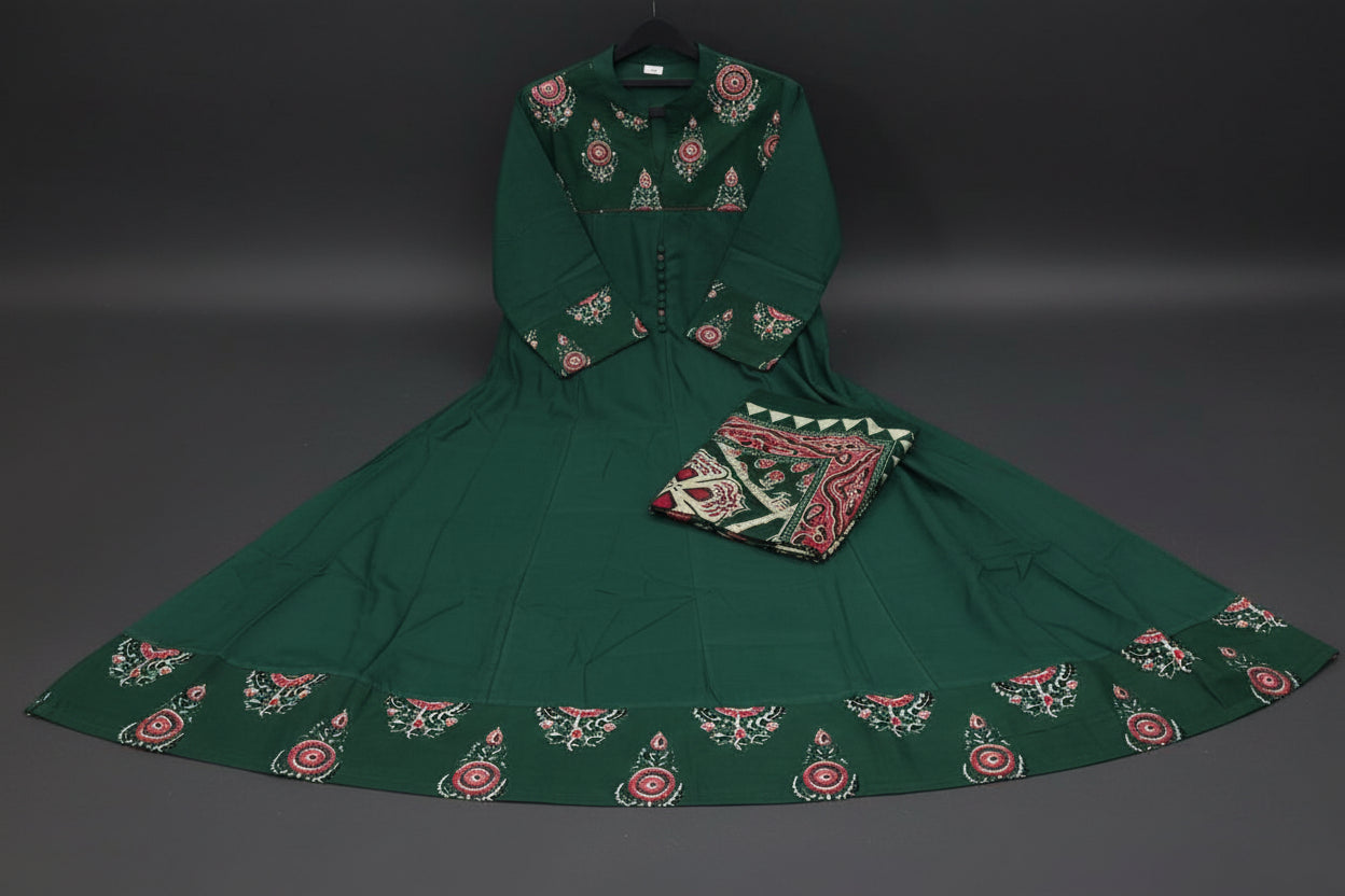 Step into elegance with this beautifully crafted flared Anarkali suit, designed to give you a graceful, flowy look with every twirl. Blending traditional charm with modern style, it’s perfect for festive occasions and special gatherings.