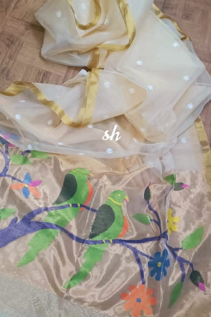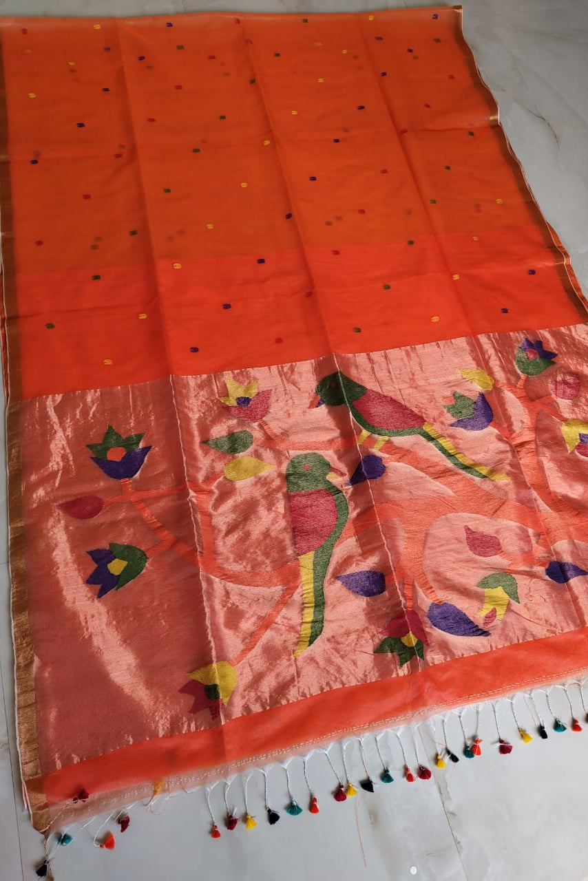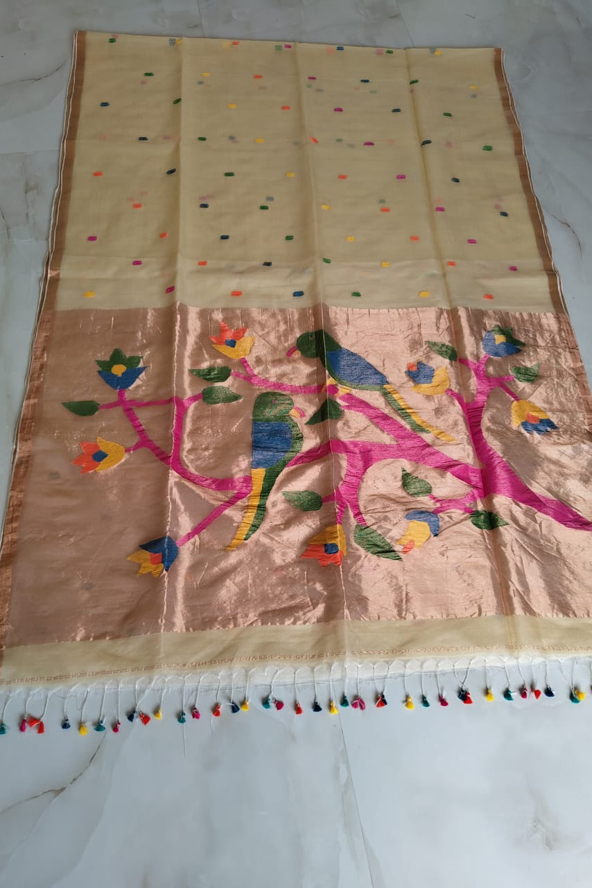Pure Tissue Linen Cutwork Mon Amaar Exclusive Saree