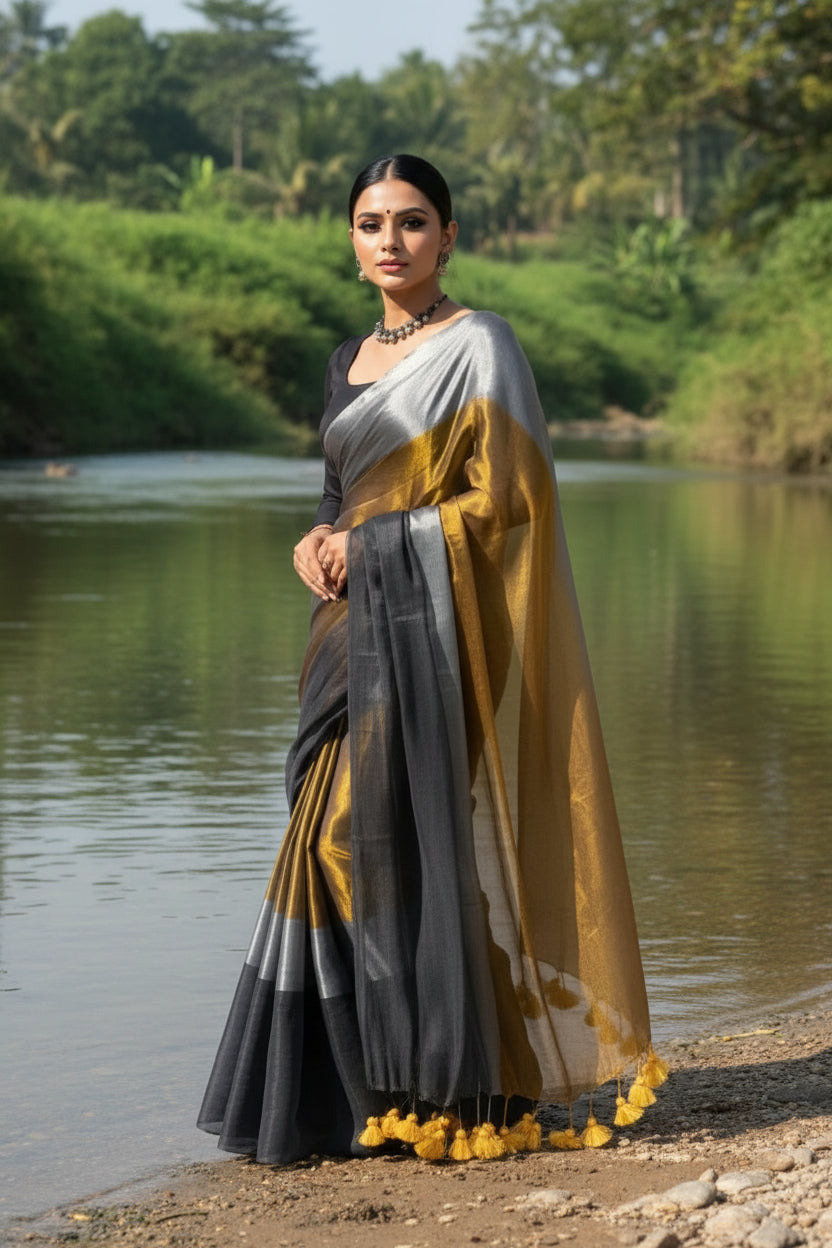 SMRITIKONA Pure Gacchi Tussar Silk Saree