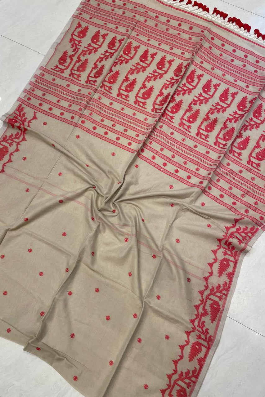 - Fabric: Soft Mul Cotton jamdani Saree with Beautiful weaving design.