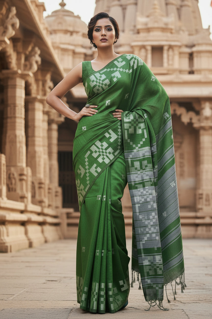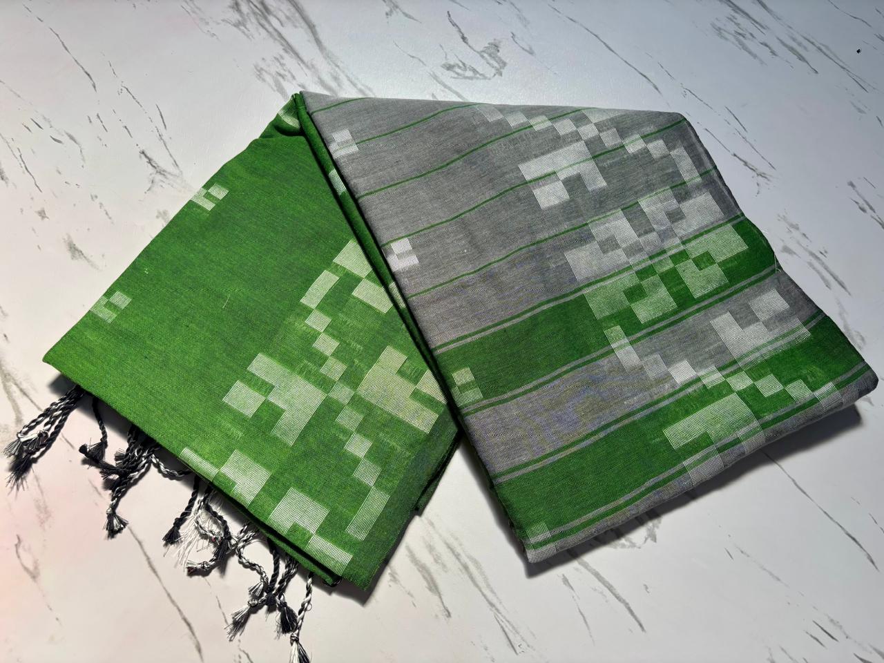 - Fabric: Bengal Khadi cotton saree