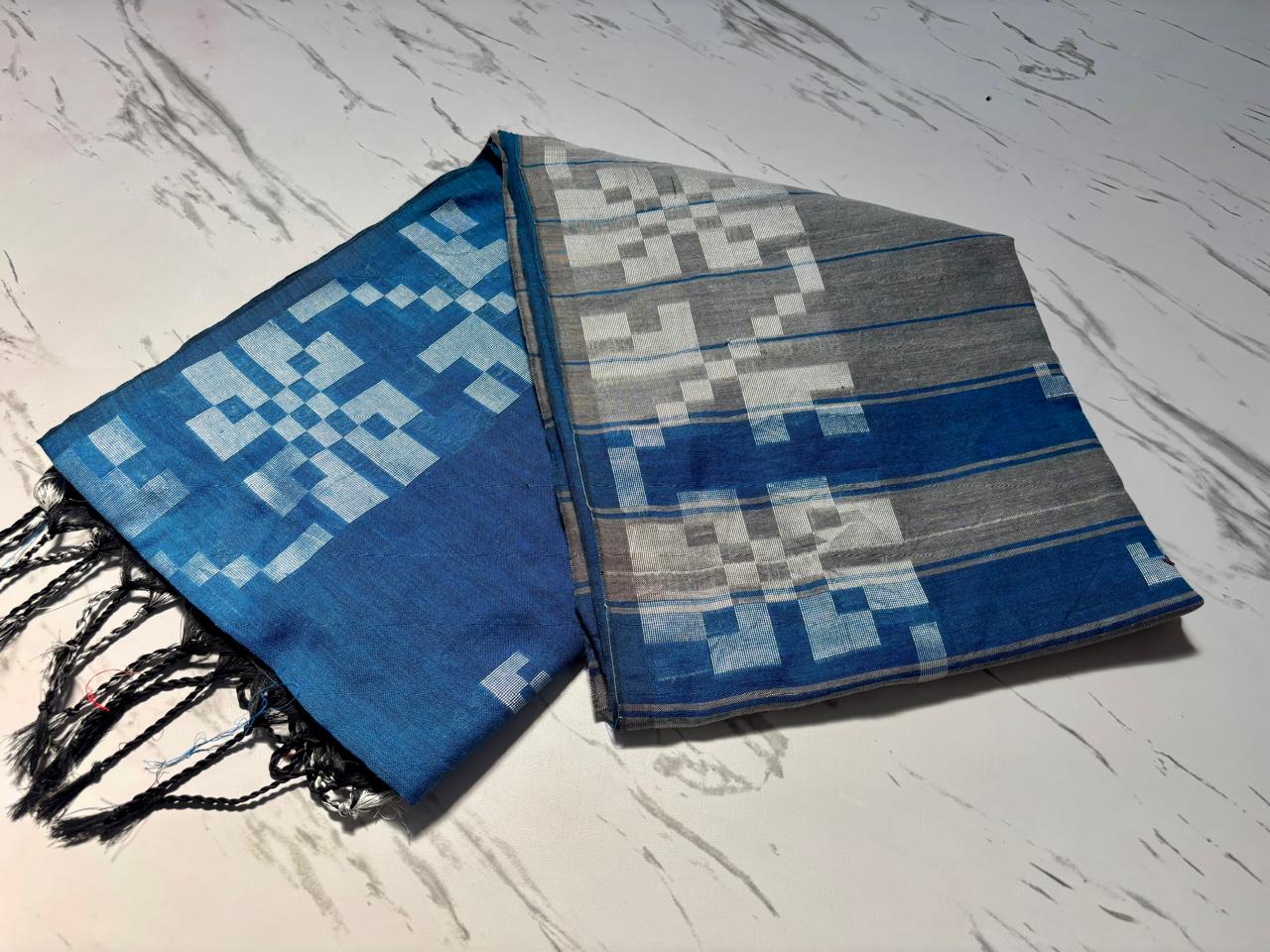 - Fabric: Bengal Khadi cotton saree