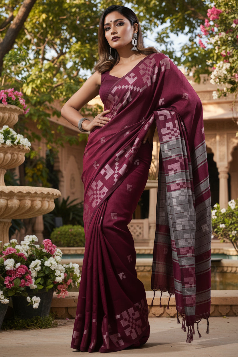 - Fabric: Bengal Khadi cotton saree