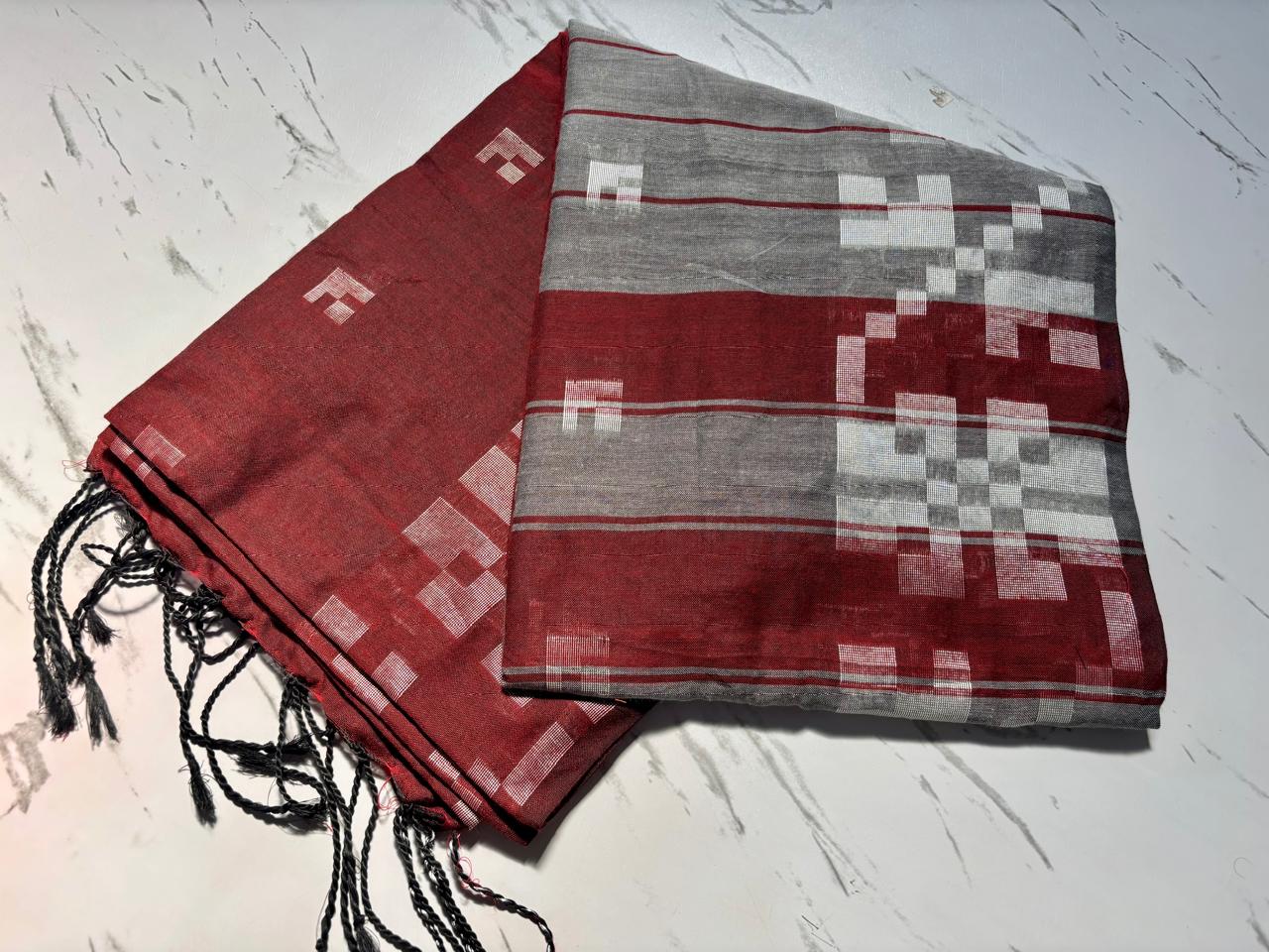 - Fabric: Bengal Khadi cotton saree