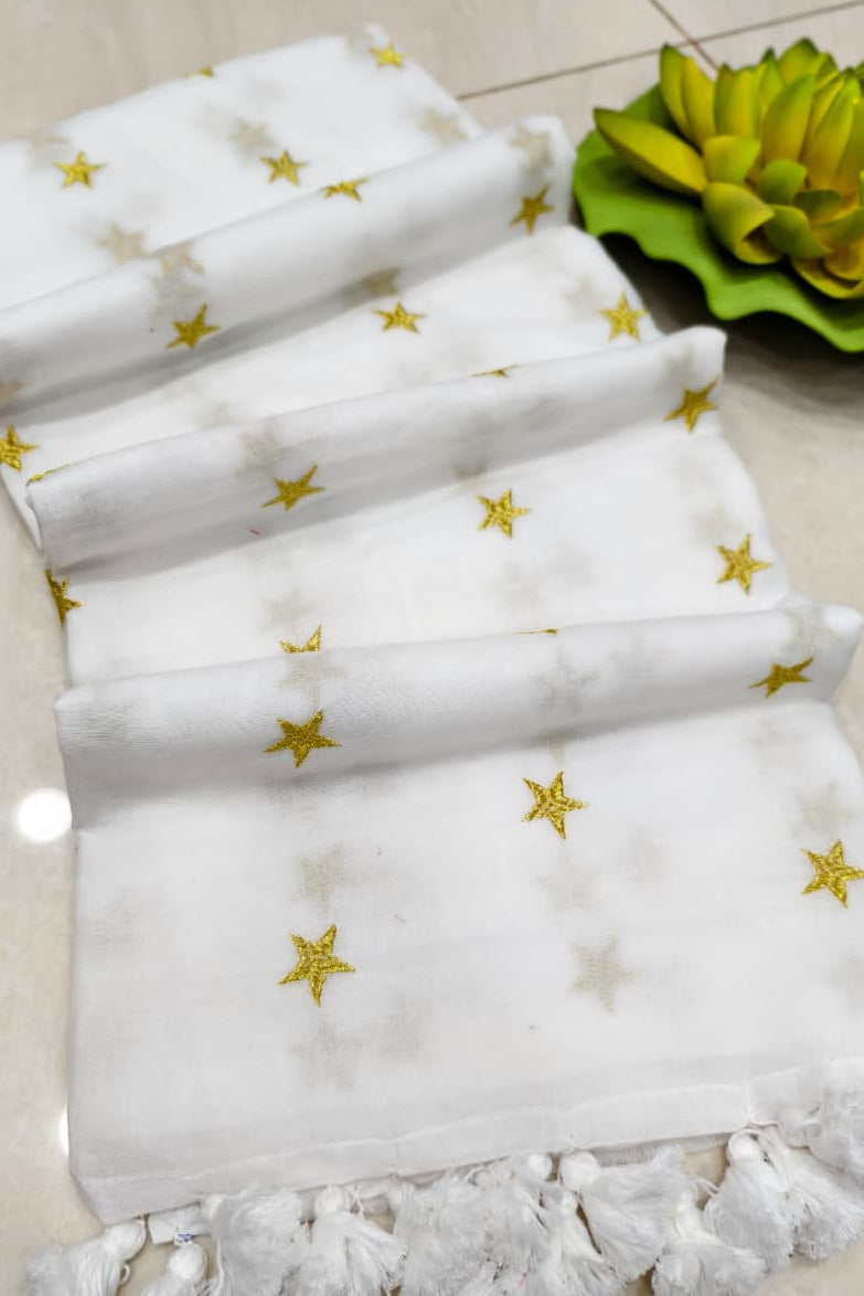 Star Embroidery Mul Cotton Saree