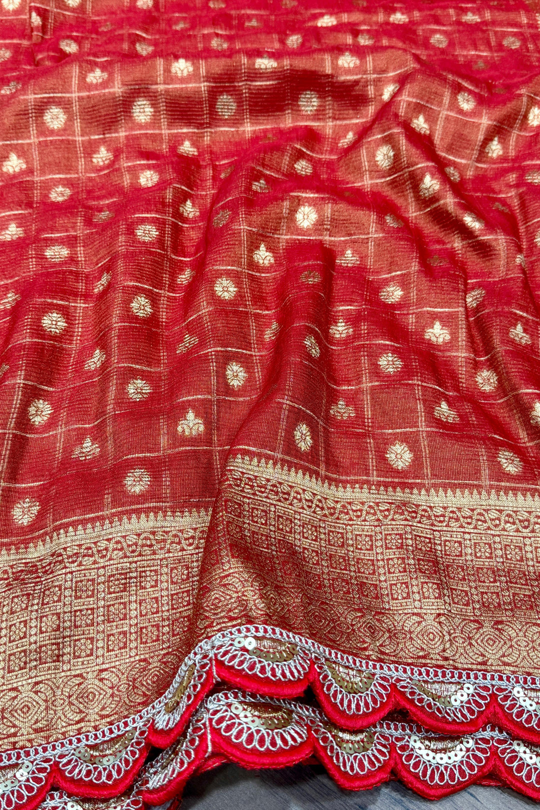Red Sindoor Saaz Fancy Satin Silk Saree