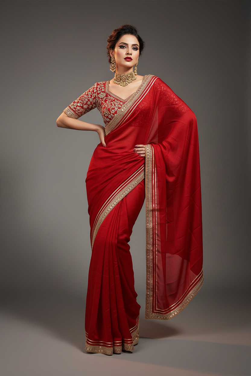 - Beautiful bright color saree with sequins and embroidery work all over