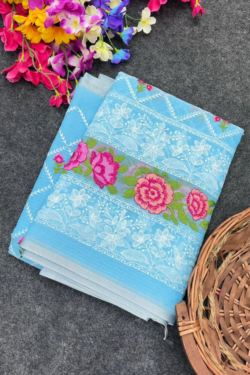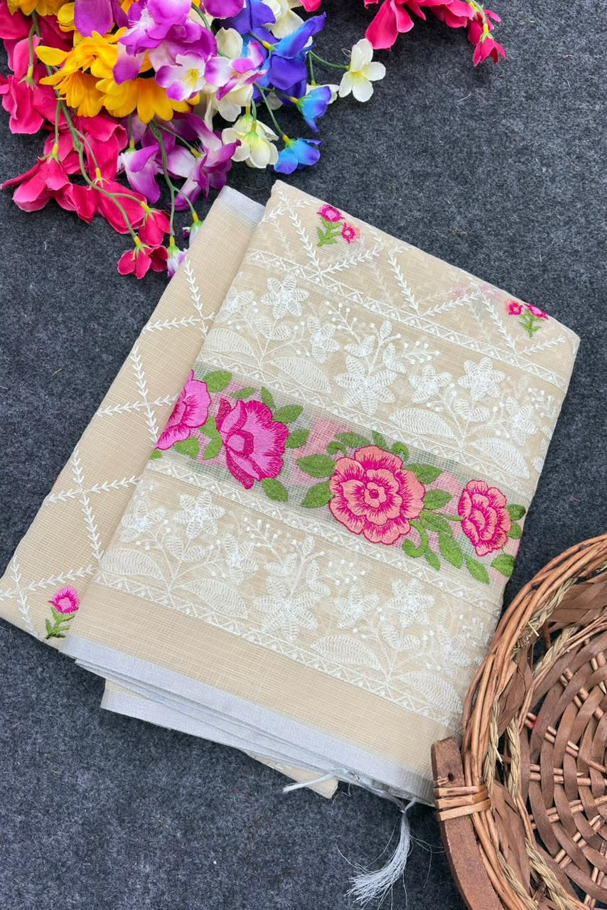 Flaw- Free Embroidery Kota Doriya Saree