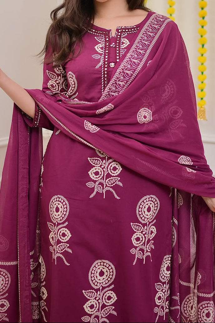 Introducing our soft Cotton Kurti Set a timeless classic for versatile elegance. This stunning Kurti set features likes embroidery print that is trendy and gorgeous. Made with heavy cotton , this set is not only cool but also comfortable to wear. Elevate your style game with this must-have set!