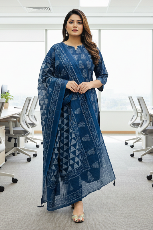 Introducing our soft Cotton Kurti Set a timeless classic for versatile elegance. This stunning Kurti set features likes katha style  that is trendy and gorgeous. Made with high-quality soft cotton , this set is not only cool but also comfortable to wear. Elevate your style game with this must-have set!