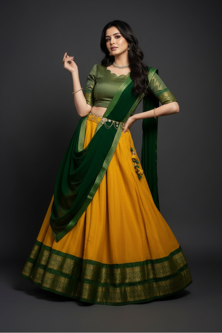 South-style Designer Kanchipuram Silk lehenga