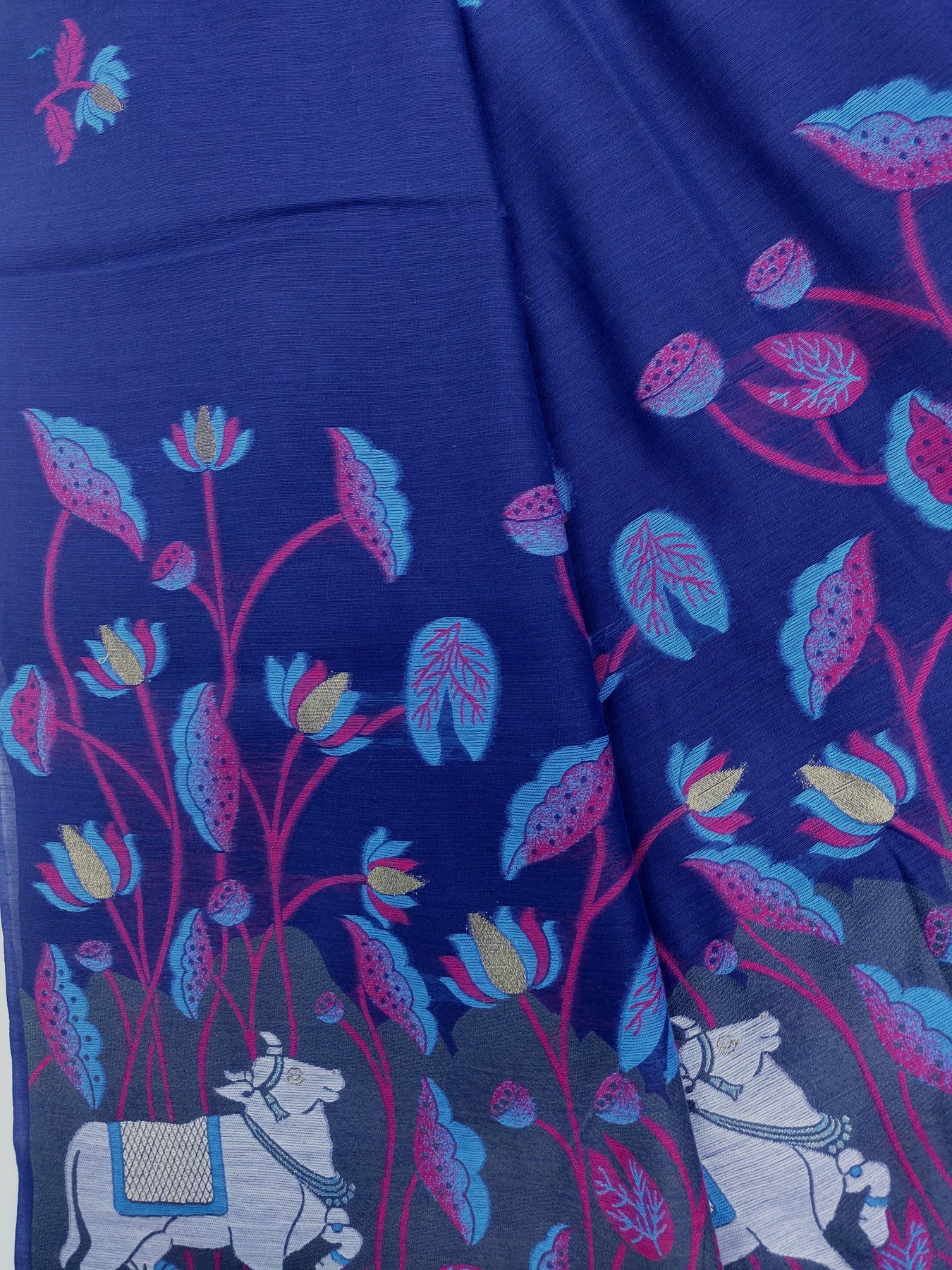 This Beauty In Smile Muga Cotton Saree is a luxurious saree that will make you look and feel like royalty. Crafted from Muga cotton fabric, with beautiful weaving style allover the body and Pichwai type weaving pallu ,this saree will be sure to turn heads. Its exquisite design makes it the perfect addition to any wardrobe.