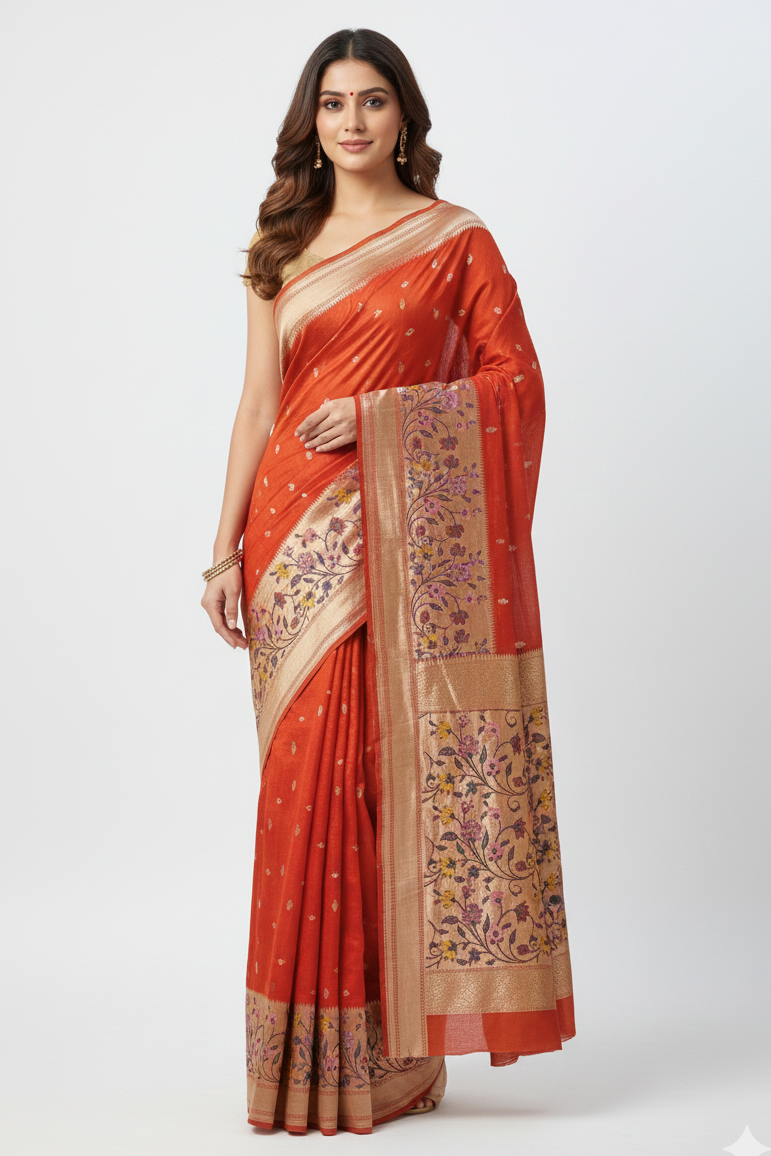 Today’s Treasures Orange Banarasi Silk Saree