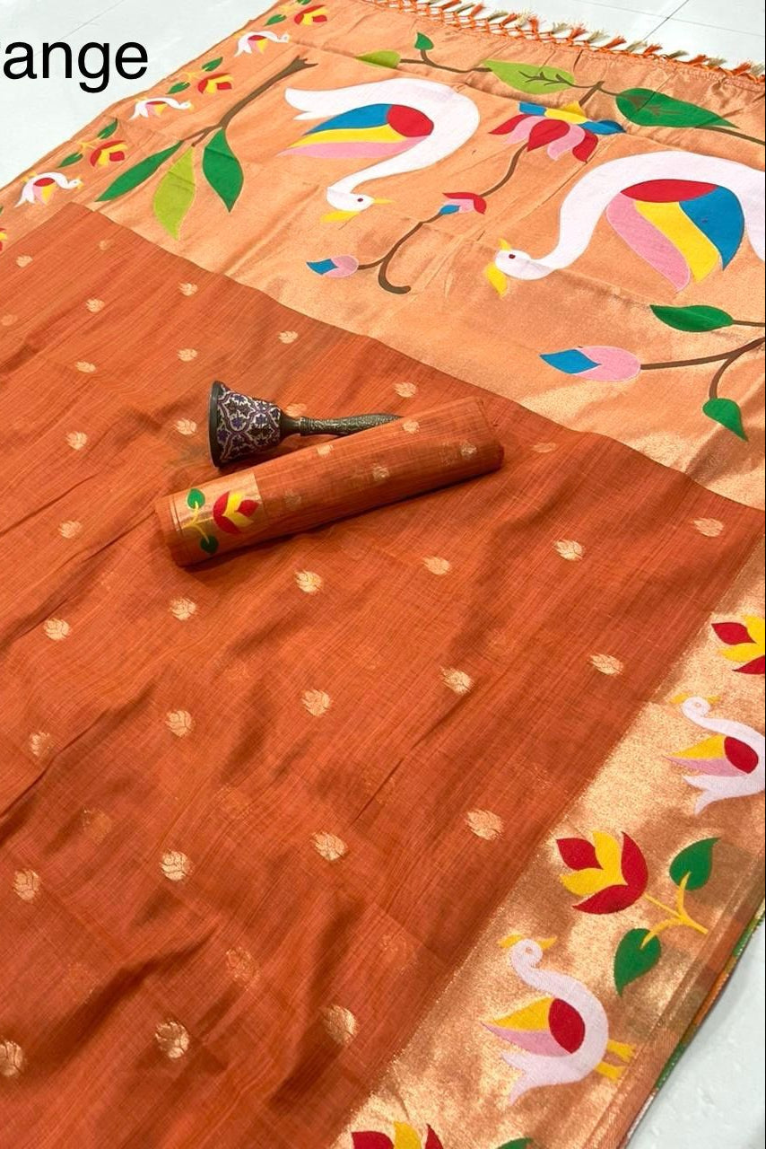 History In Gold Paithani Orange Silk Saree