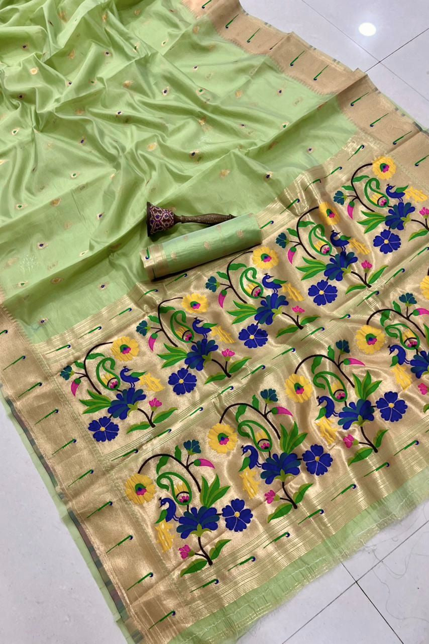 Organza silk is a type of organza saree which is made up of a fusion of traditional and contemporary Indian styles. Organza silk sarees hold heavy zari pallu with a beautiful border which attracts the eye of an individual.