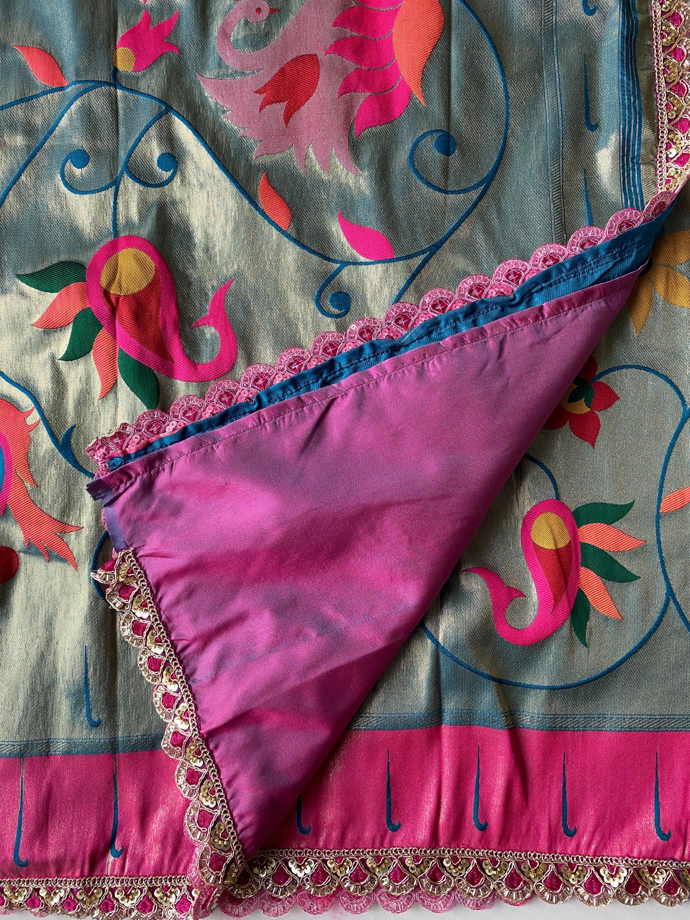 • Special Feature - It has paithani style along with weaving style that makes it an Unique Traditional  saree