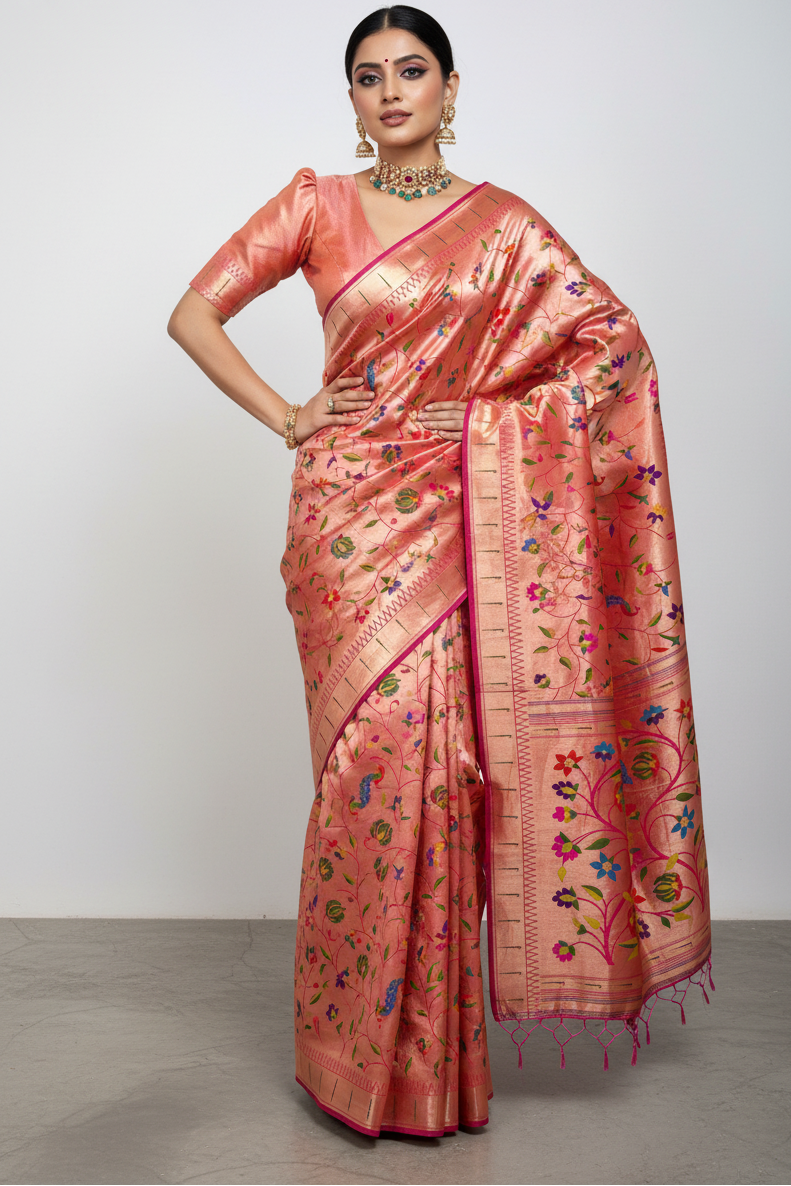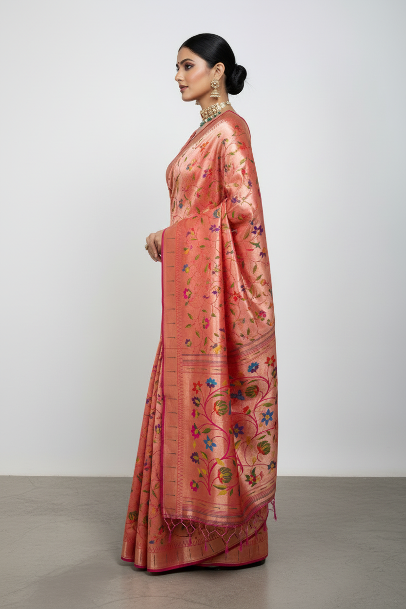 - Kanchivaram brocade Paithani Silk(Blended)