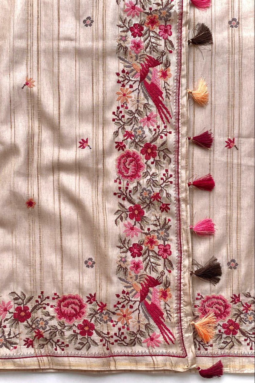 Elevate any day with the Designer Semi Tussar Silk Saree namely Breezora. Carefully crafted with stunning multi thread embroidery work, this vibrant saree is guaranteed to make you the center of attention and keep you in style. Its captivating design will leave a lasting impression and help you shine every day. Trust in the magic of the saree and make each day your own!