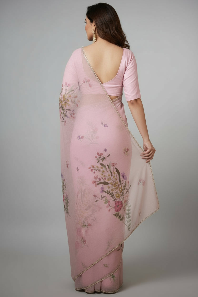 - All over beautiful floral print with cut dana work on border