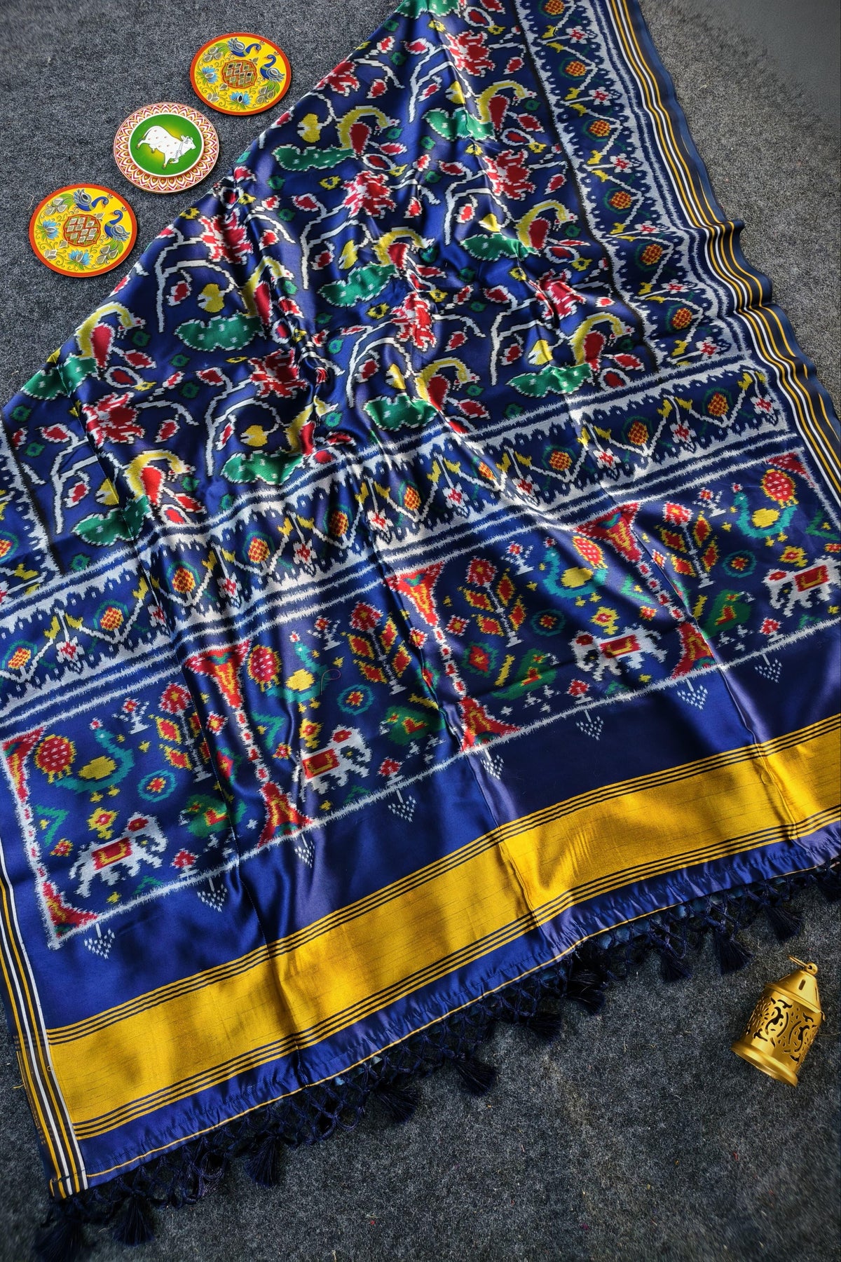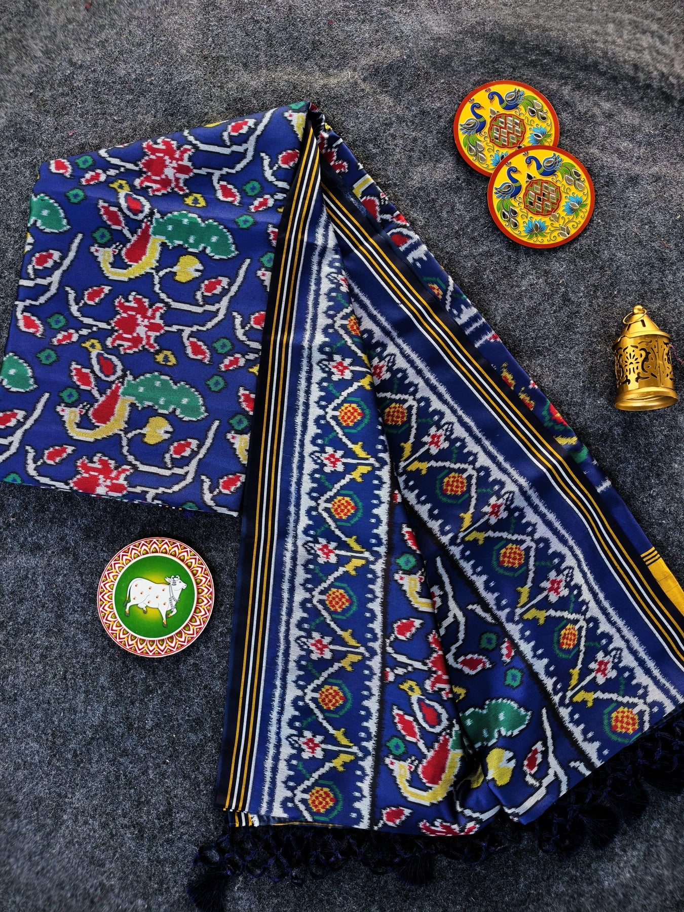 • Premium soft silk with all over Patola style Double ikkat print. [ blended]