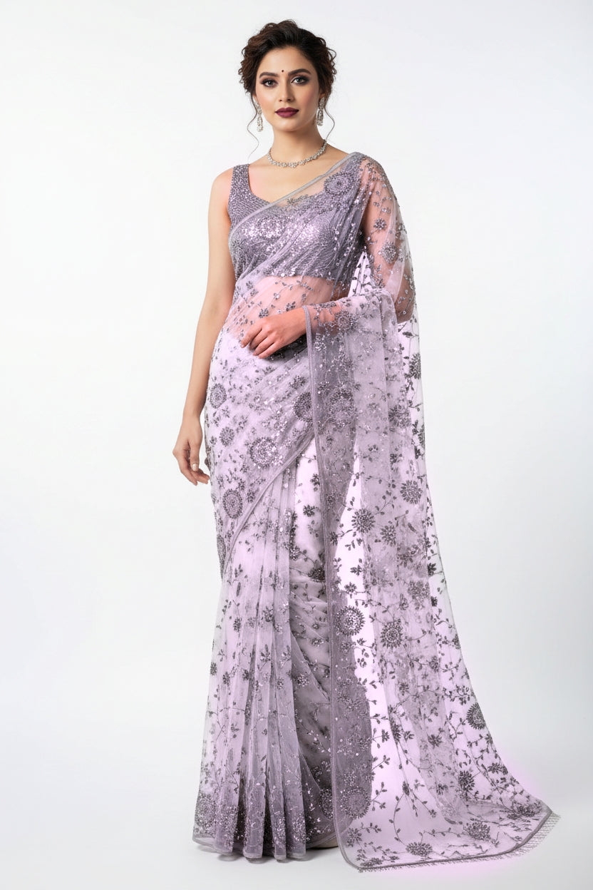 Starborne Grace Designer Net Saree( Lavender Grey Color)