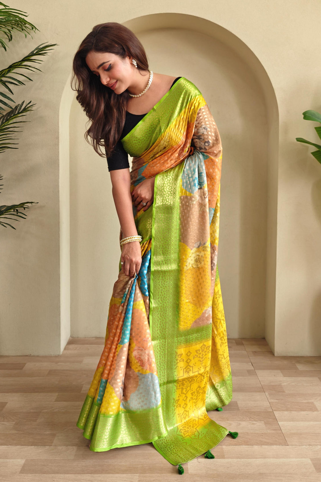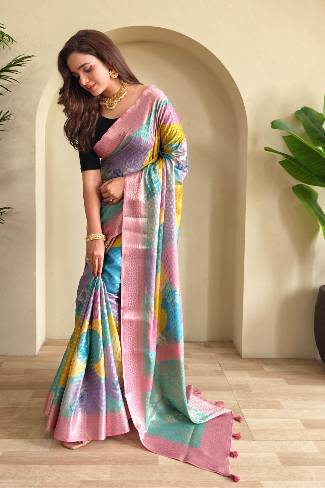 - Because party wear silk sarees are often heavy, you may get this appearance by draping your saree such that the thick pallu of your silk saree is visible in front of your shoulder. This allows you to show off the full beauty of the saree while also giving you a style that will turn heads.