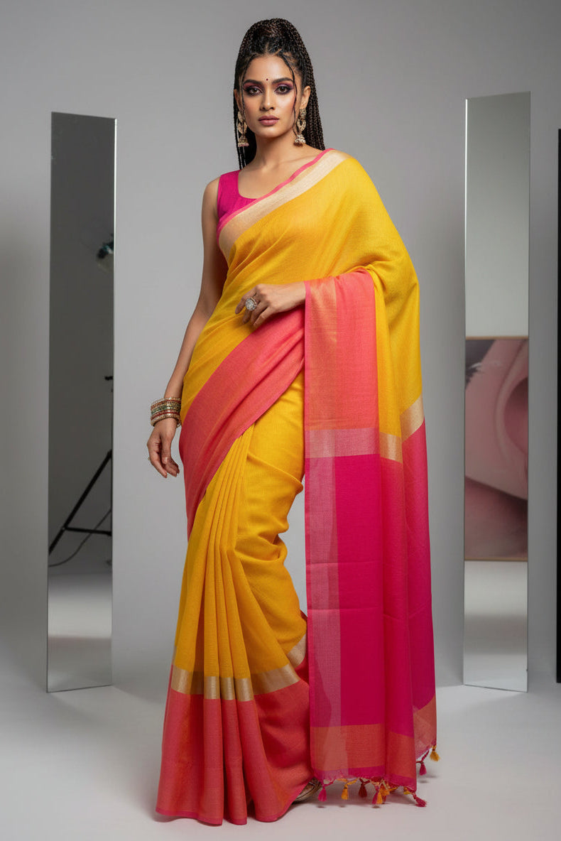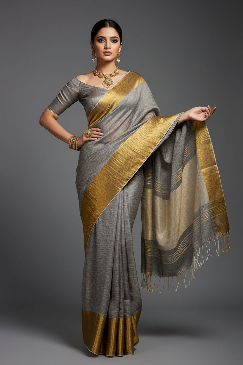 Buy Handloom Linen Sarees Online In India - Monamaar