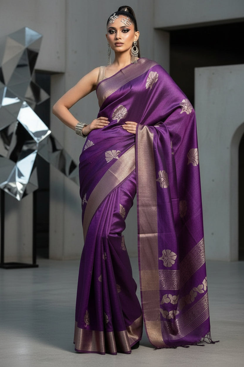 Vibgyor Violette Pure Handwoven Tissue Linen Saree