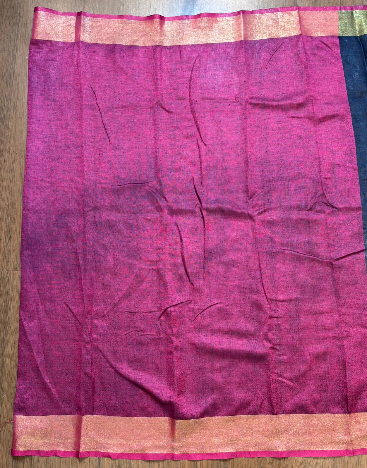 This Pure Handwoven Linen Saree is expertly crafted with pure handwoven Linen fabric, featuring delicate tassels and intricate Goden zari work on the border. Experience the luxurious feel and elegant look of this traditional saree, perfect for any occasion. Elevate your wardrobe with the finest quality craftsmanship and timeless design.
