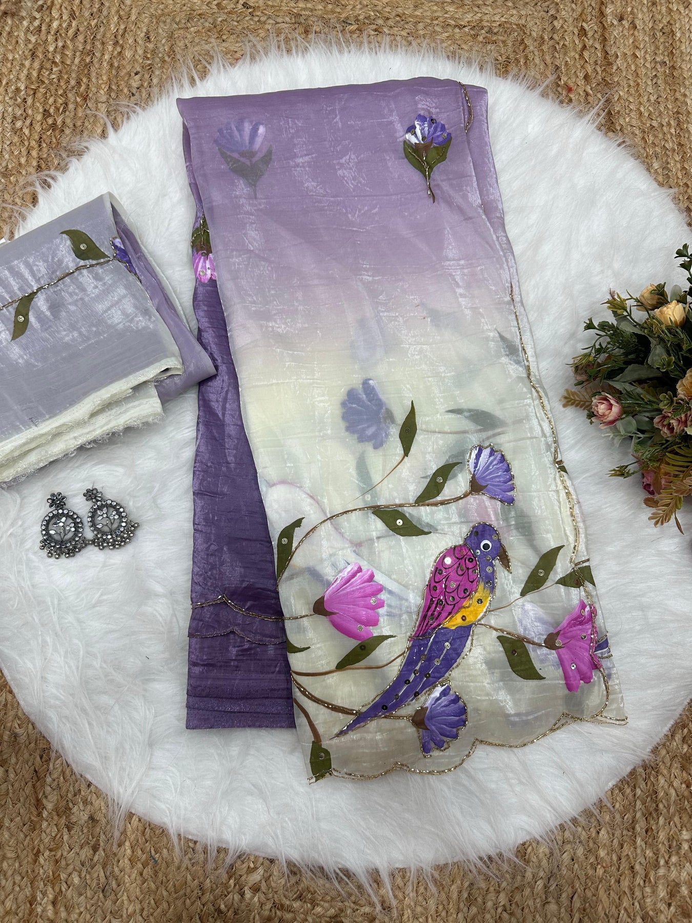 - this designer saree's length is 5.5 mtr approx. and 0.8 mtr blouse piece