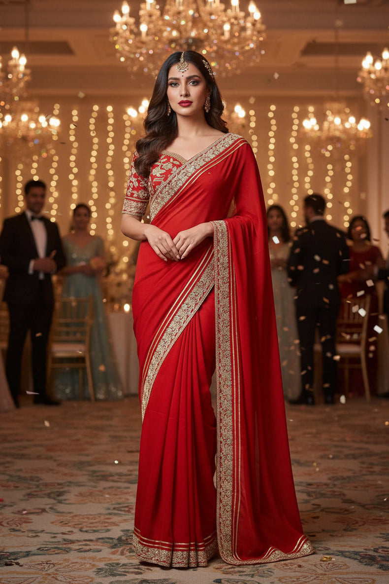 Timeless Stories Georgette Silk Saree [ Dupatta With Unstitched Blouse]