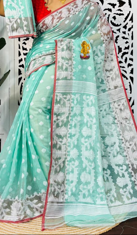 - Premium Quality cotton moslin jamdani Saree with Beautiful design.
