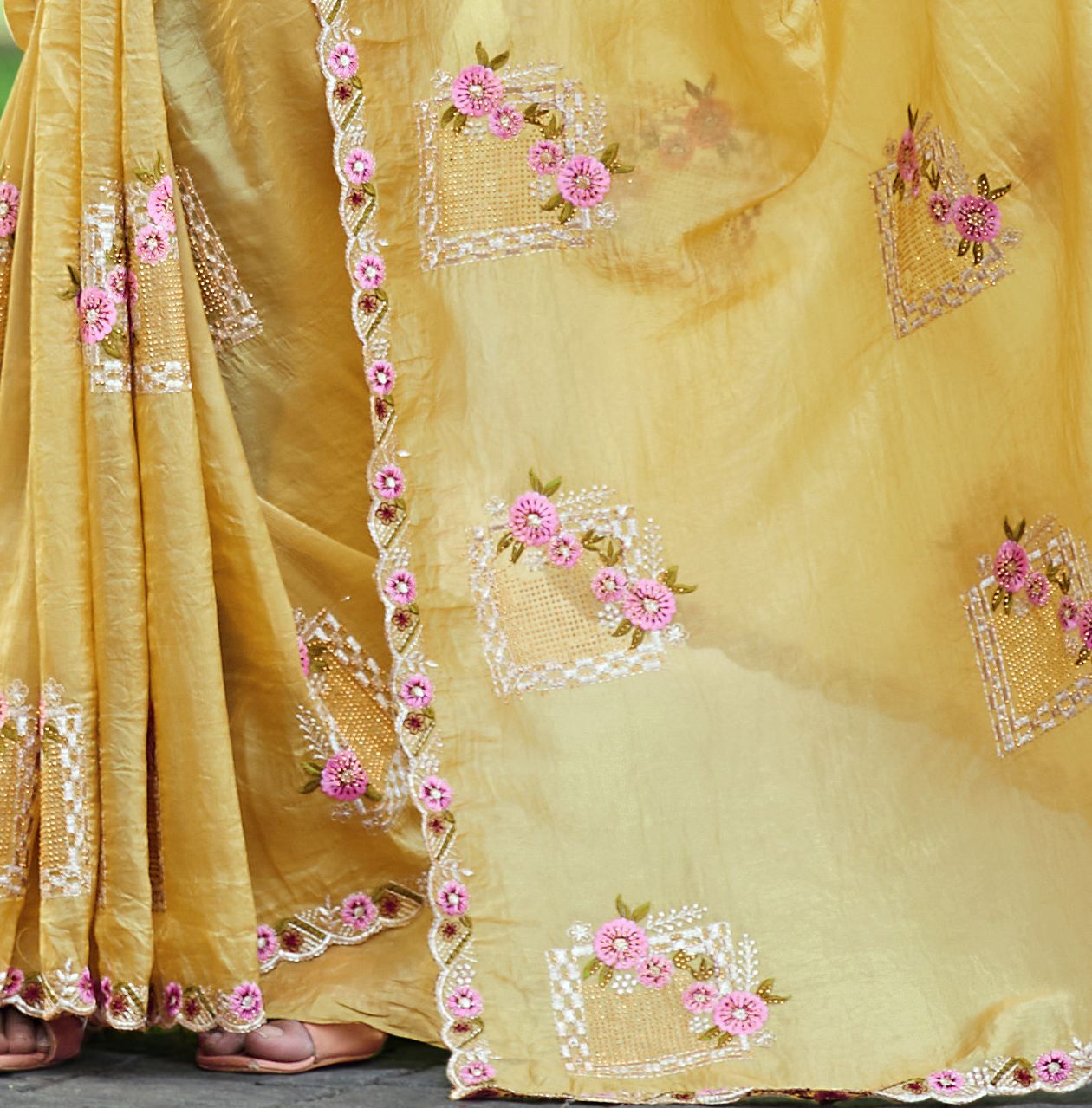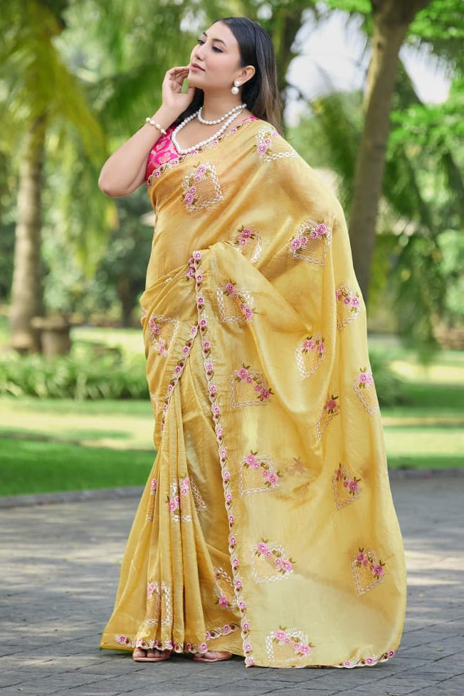 Bloom Reverence Designer Fancy Embroidery Silk Saree