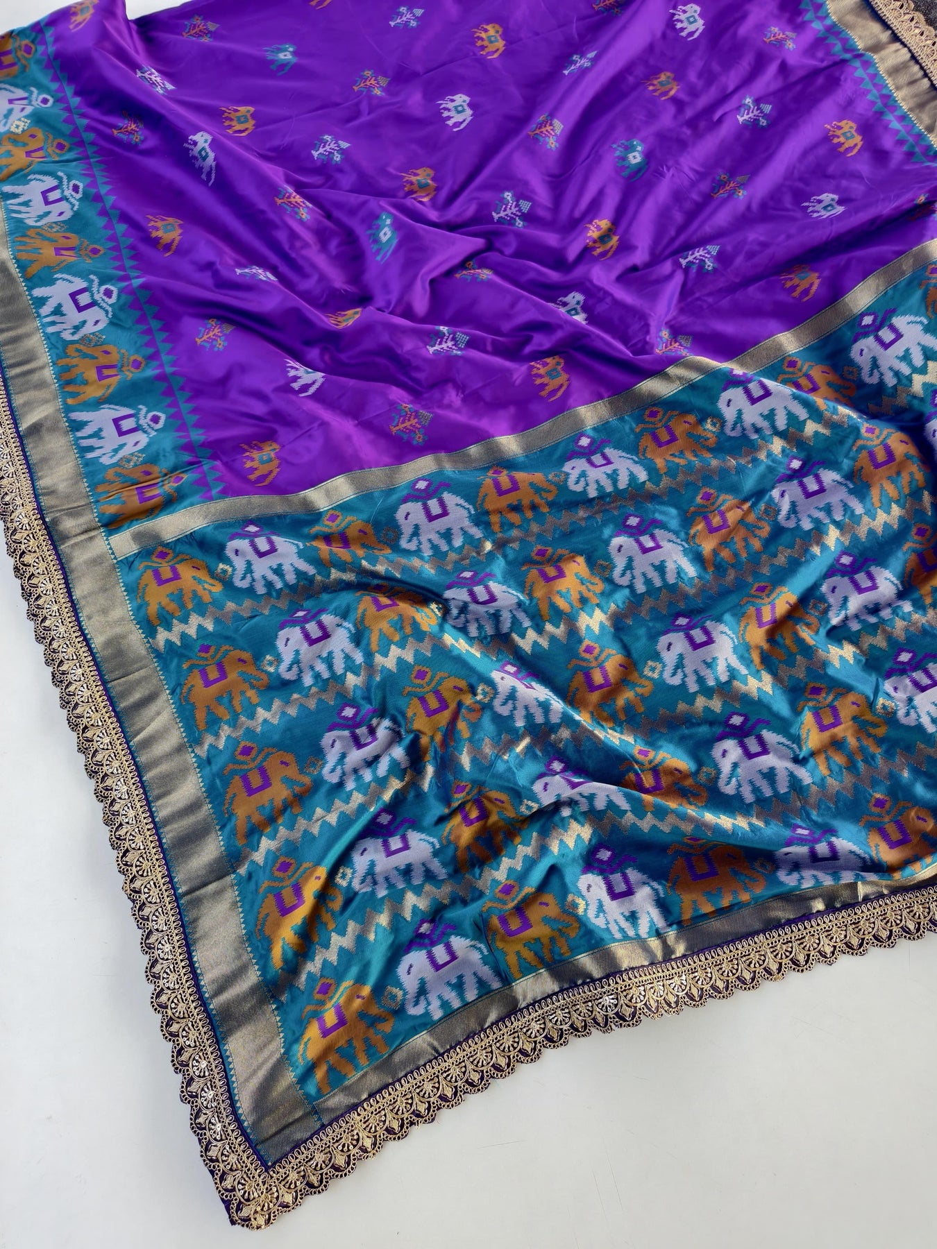 - Color with rich weaved pallu with patola style Elephant design