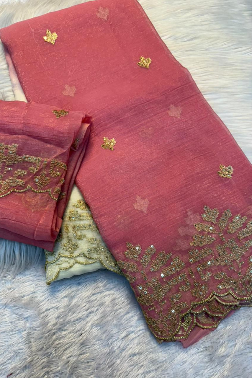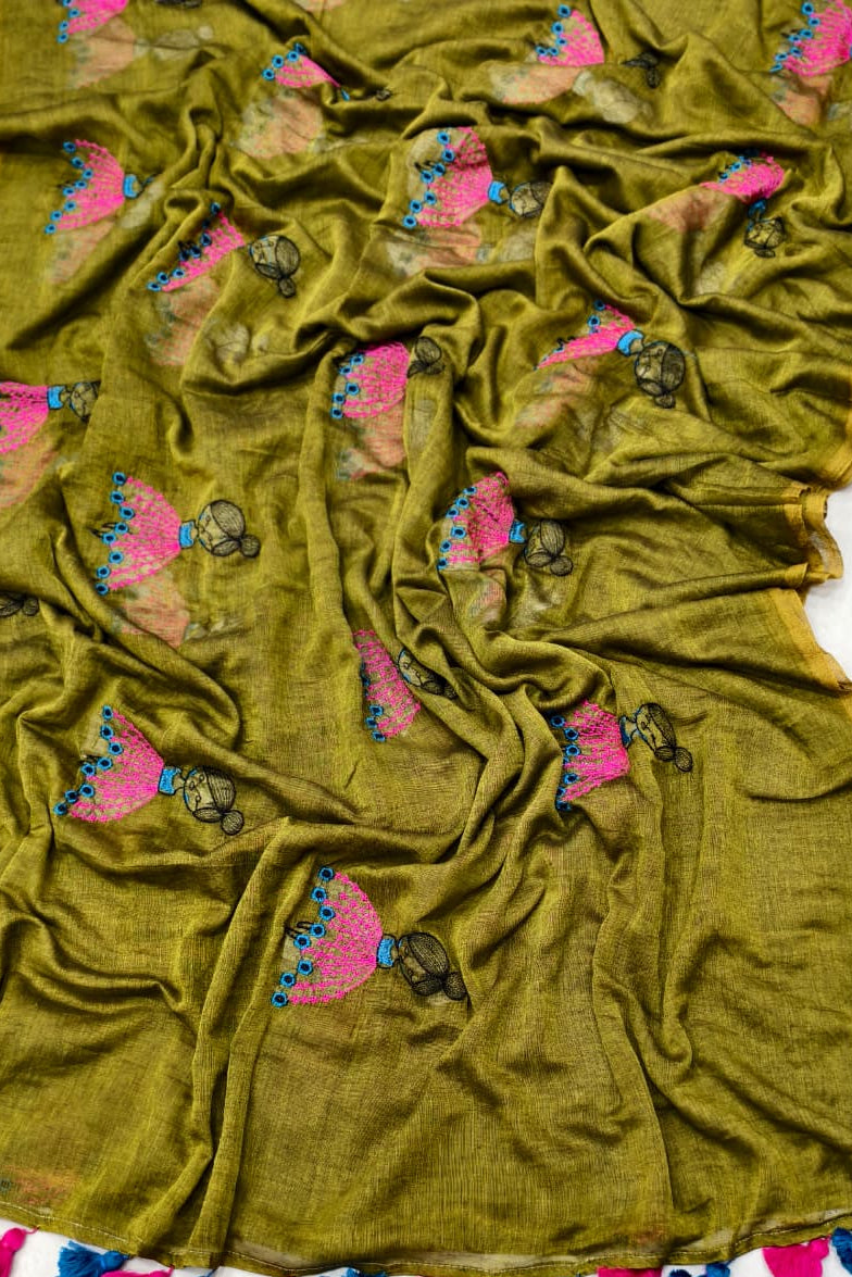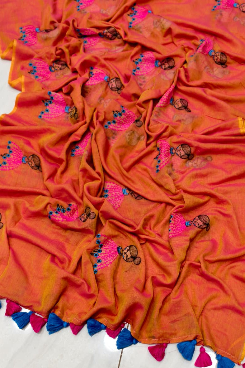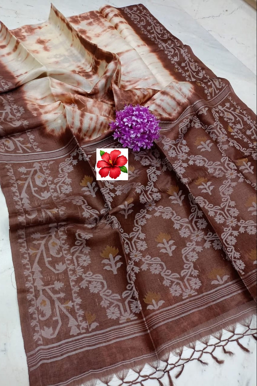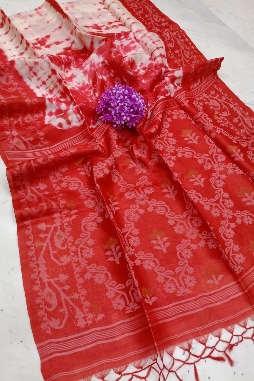 Ranga Kunjo Gachi Tussar Jamdani Handloom Saree