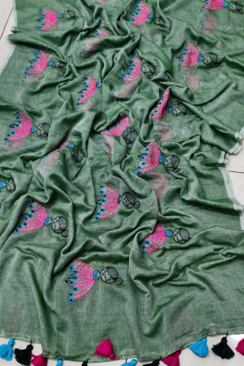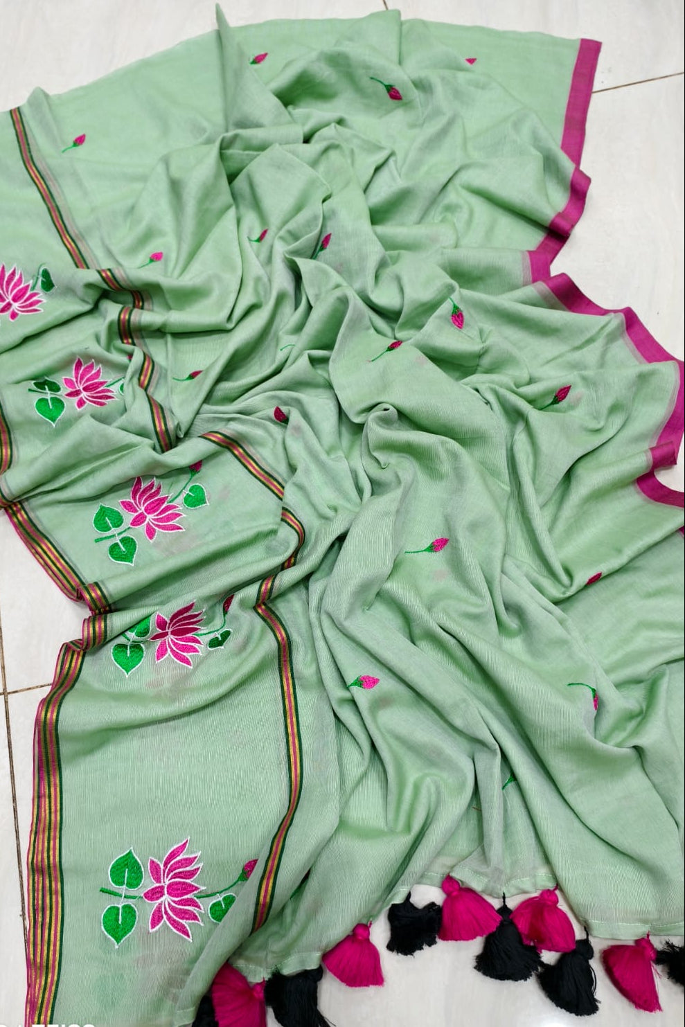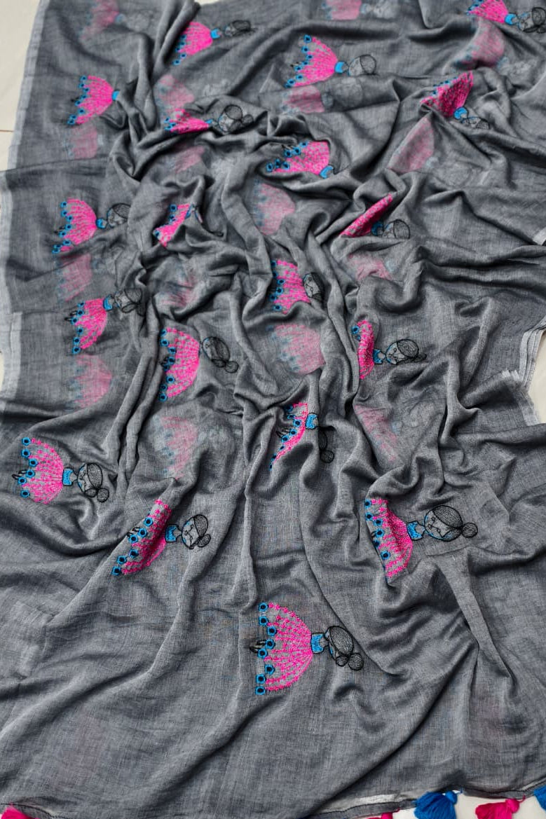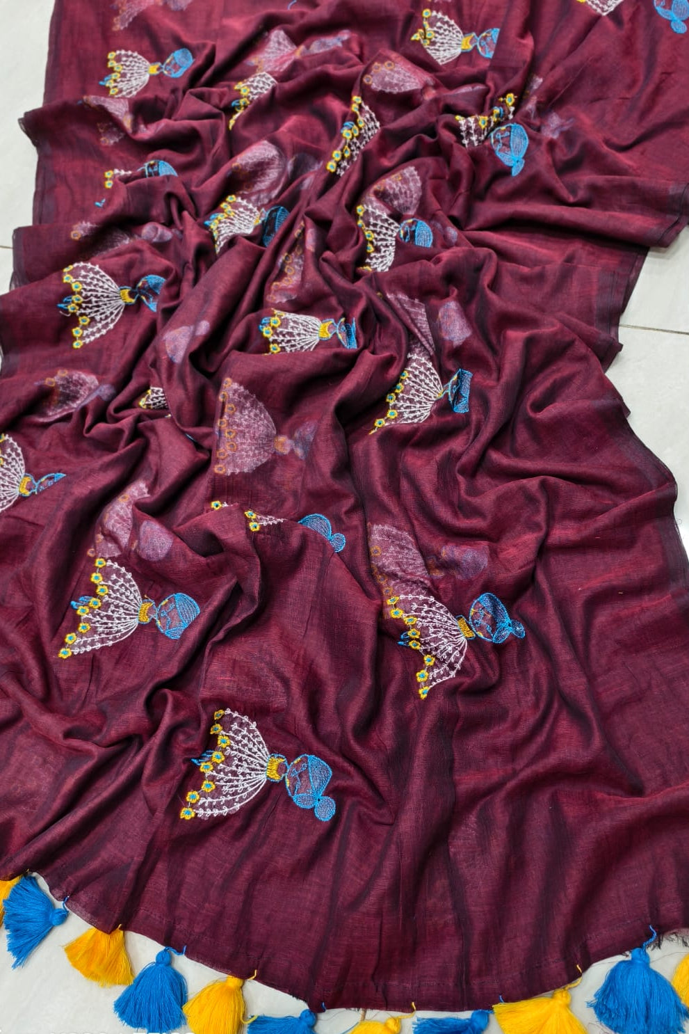 Ranga Kunjo Gachi Tussar Jamdani Handloom Saree