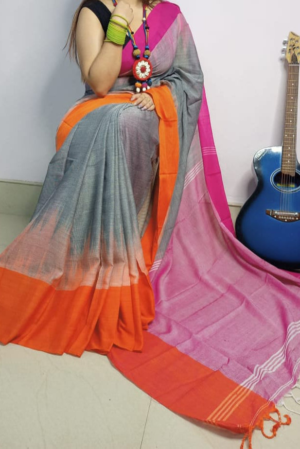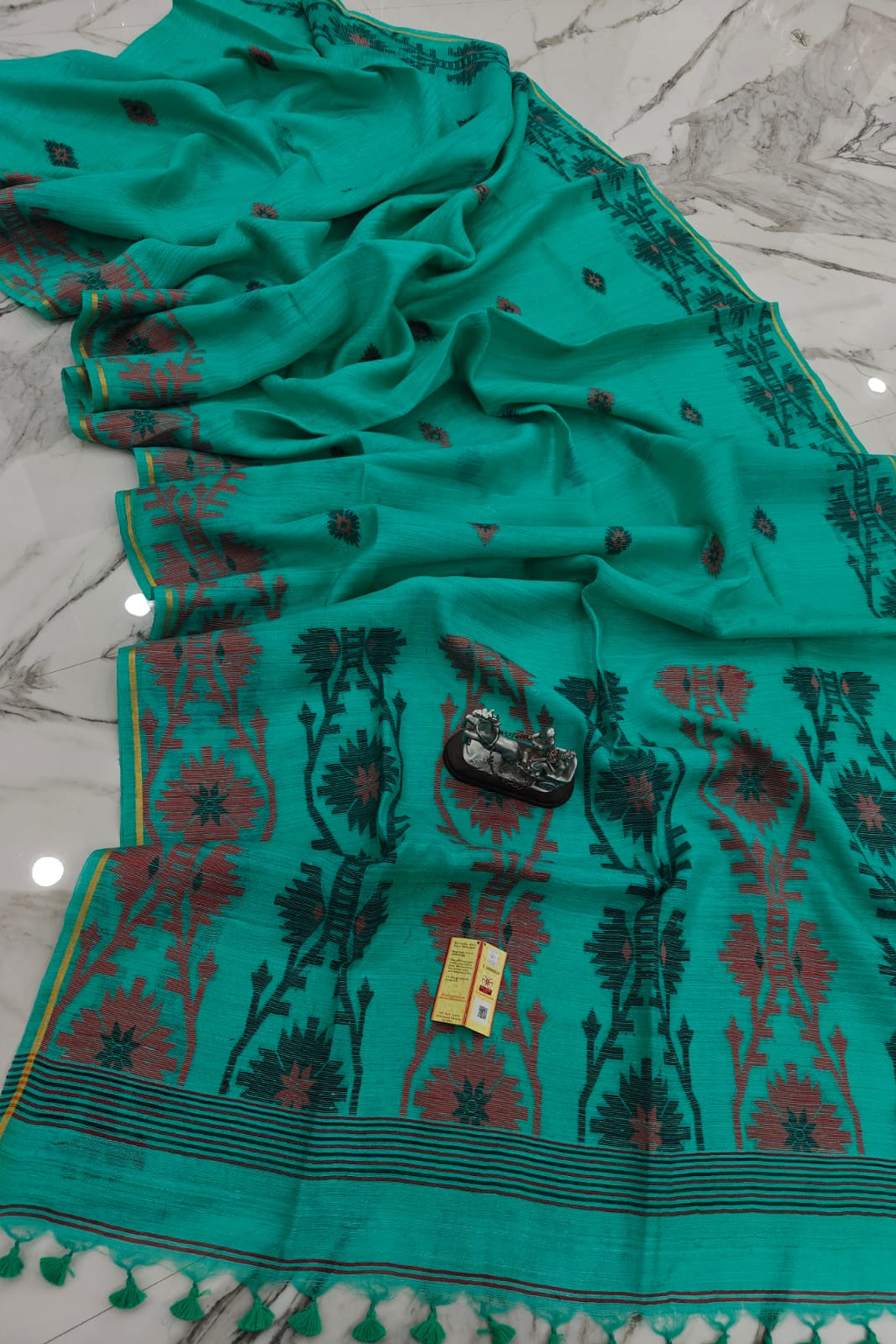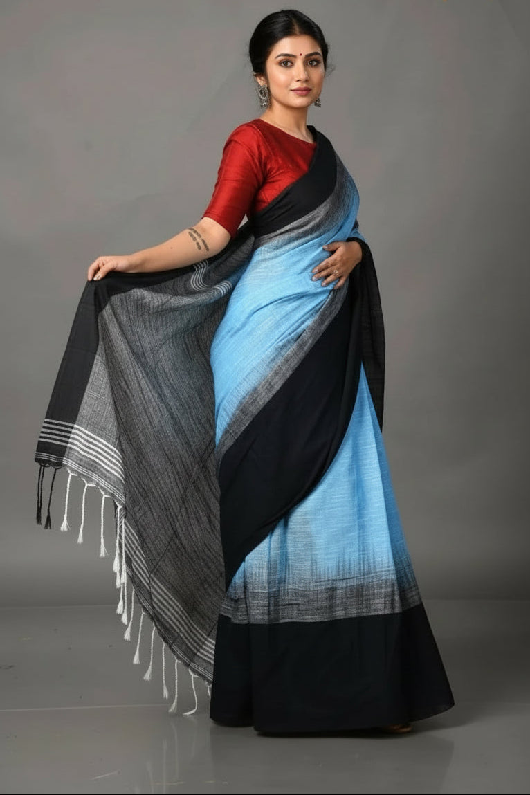 Carolina Blue Pure Handwoven Tissue Linen Saree