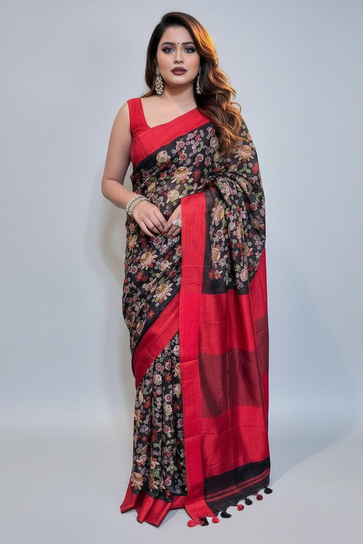 Breeze of Linen-Subtle Sophistication(Embroidered Saree)