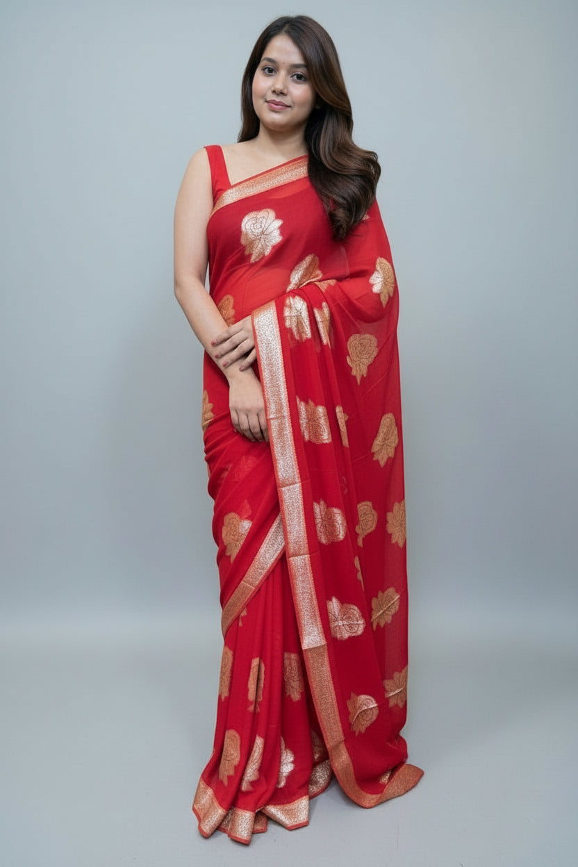 Earthy Tone Banarasi Silk Saree with Ready To Go Blouse