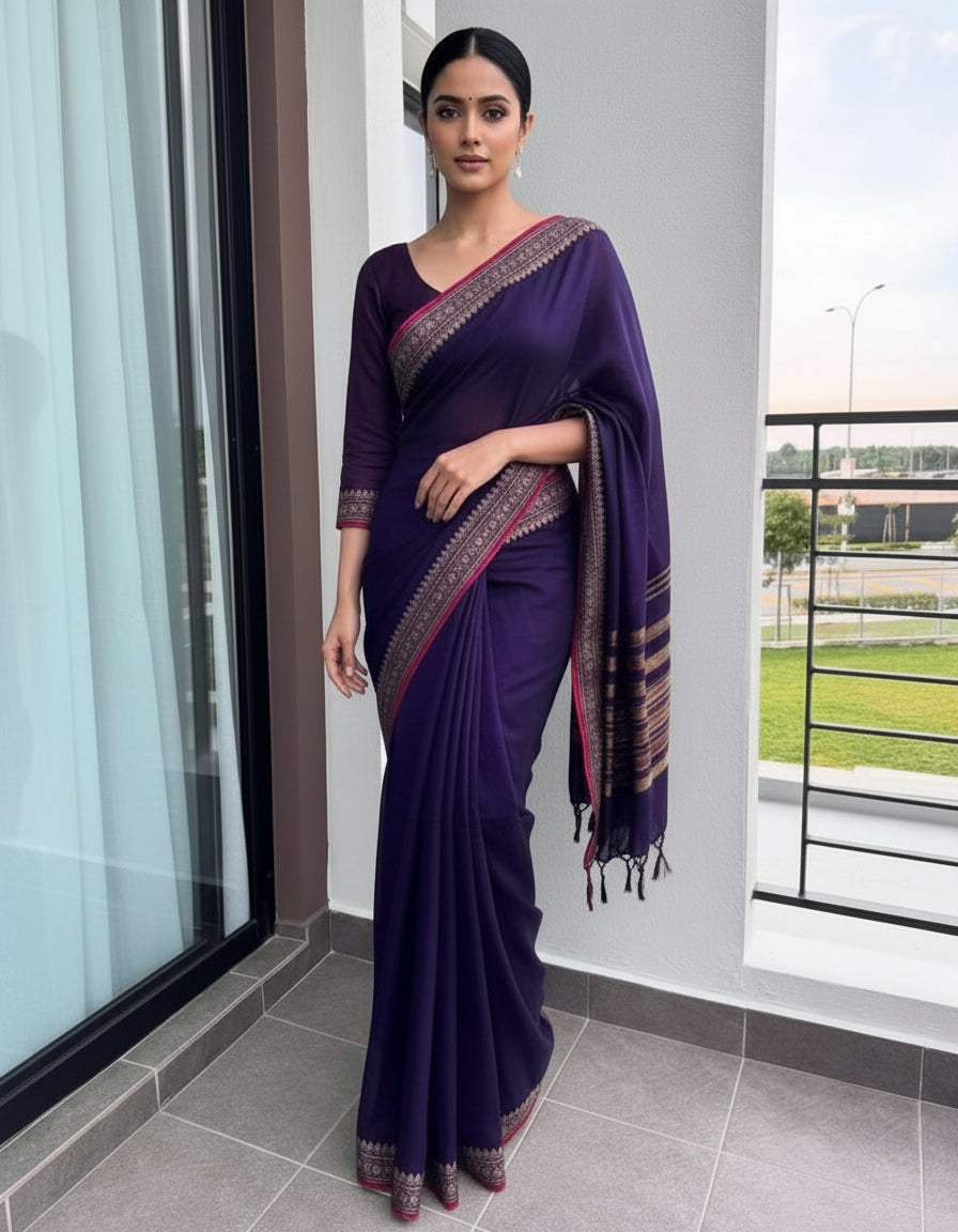 Narayanpet handloom sarees are lightweight and suitable for year-round wear. The traditional borders and pallus feature a rich pallu and unique pattern for added appeal.